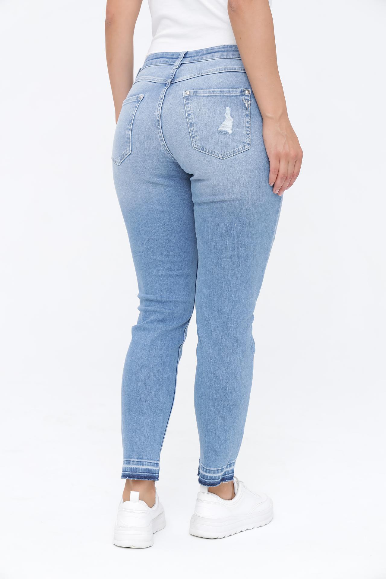 - Модный крой: Зауженный крой с эффектом "рваных" деталей и стильным необработанным краем на щиколотках отражает последние модные тенденции и подчеркивает современность образа.