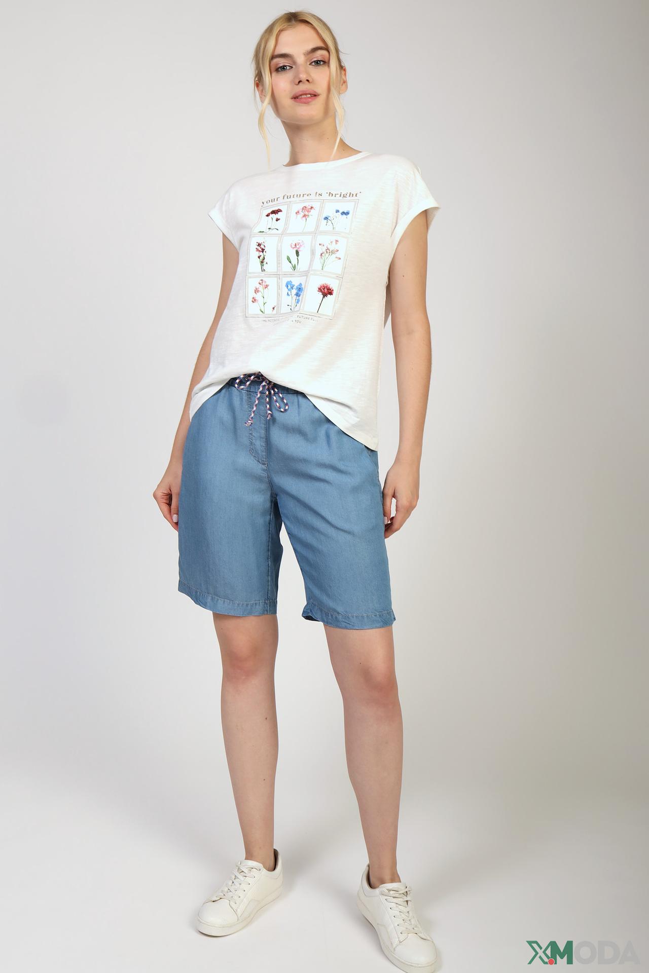 - Универсальный дизайн: Белая футболка с цветочным принтом легко комбинируется с шортами, джинсами или юбками. Это позволяет создавать разнообразные стильные образы для прогулок, встреч с друзьями или отдыха.
