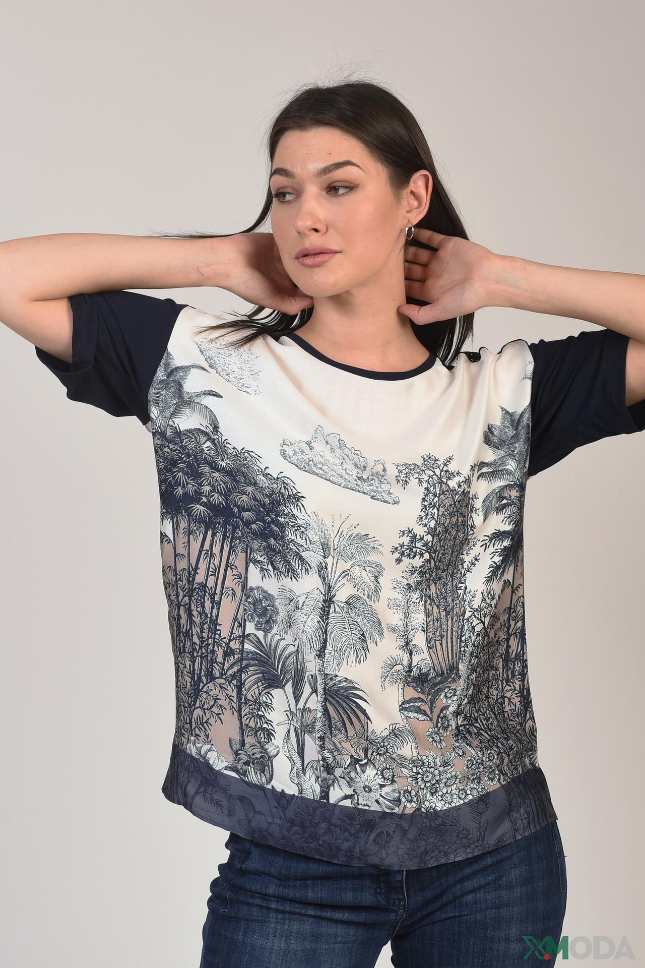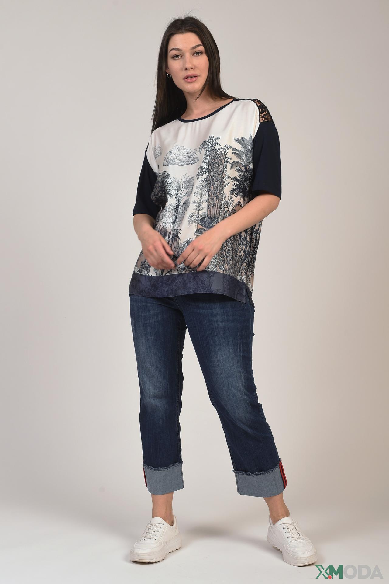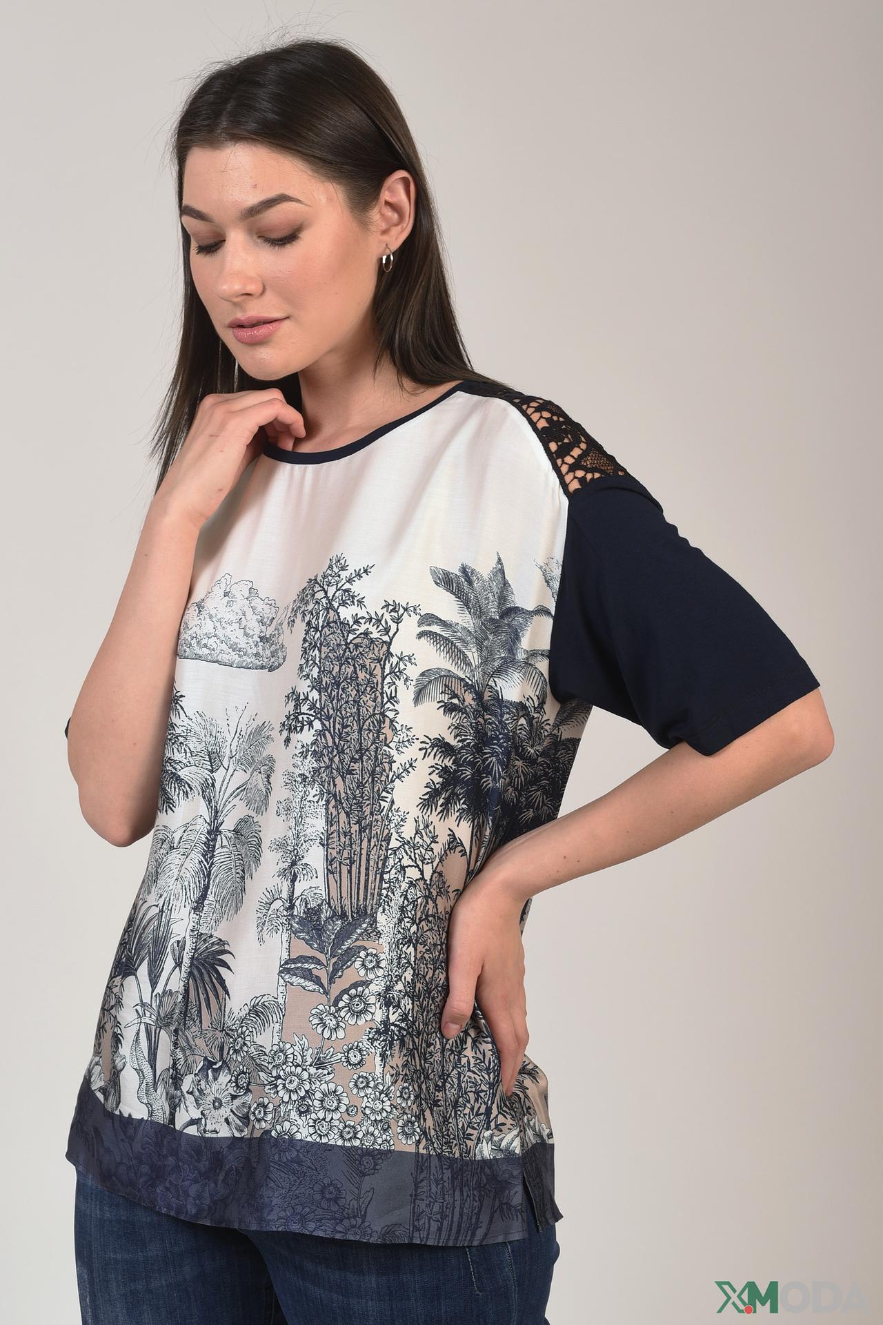 Футболка Elena Miro с принтом и кружевом тёмно-синяя