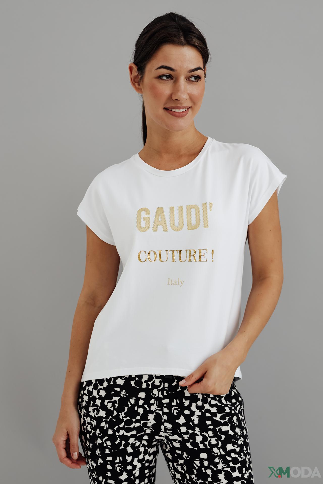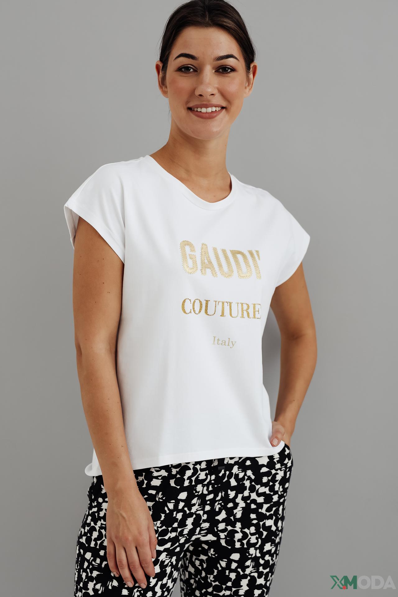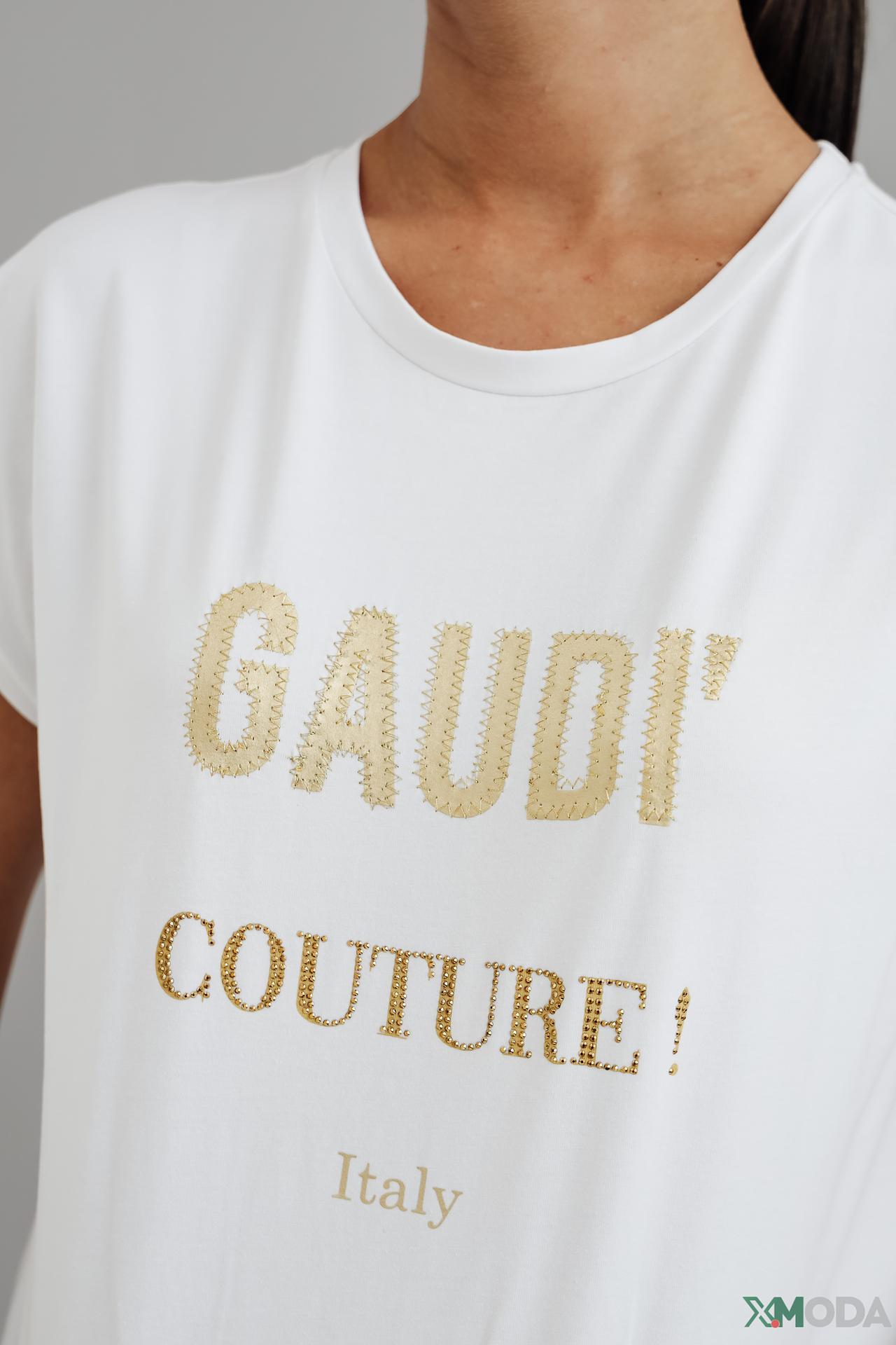 Стильная белая футболка Gaudi Couture станет ярким акцентом в вашем гардеробе. Изготовленная из мягкого и дышащего хлопка с добавлением эластана, она обеспечит комфорт и свободу движений в течение всего дня. Золотистый принт добавит образу нотку роскоши и гламура. Эта футболка идеально подходит для создания модных и запоминающихся образов. Хлопковая футболка женская – это идеальный вариант на каждый день.