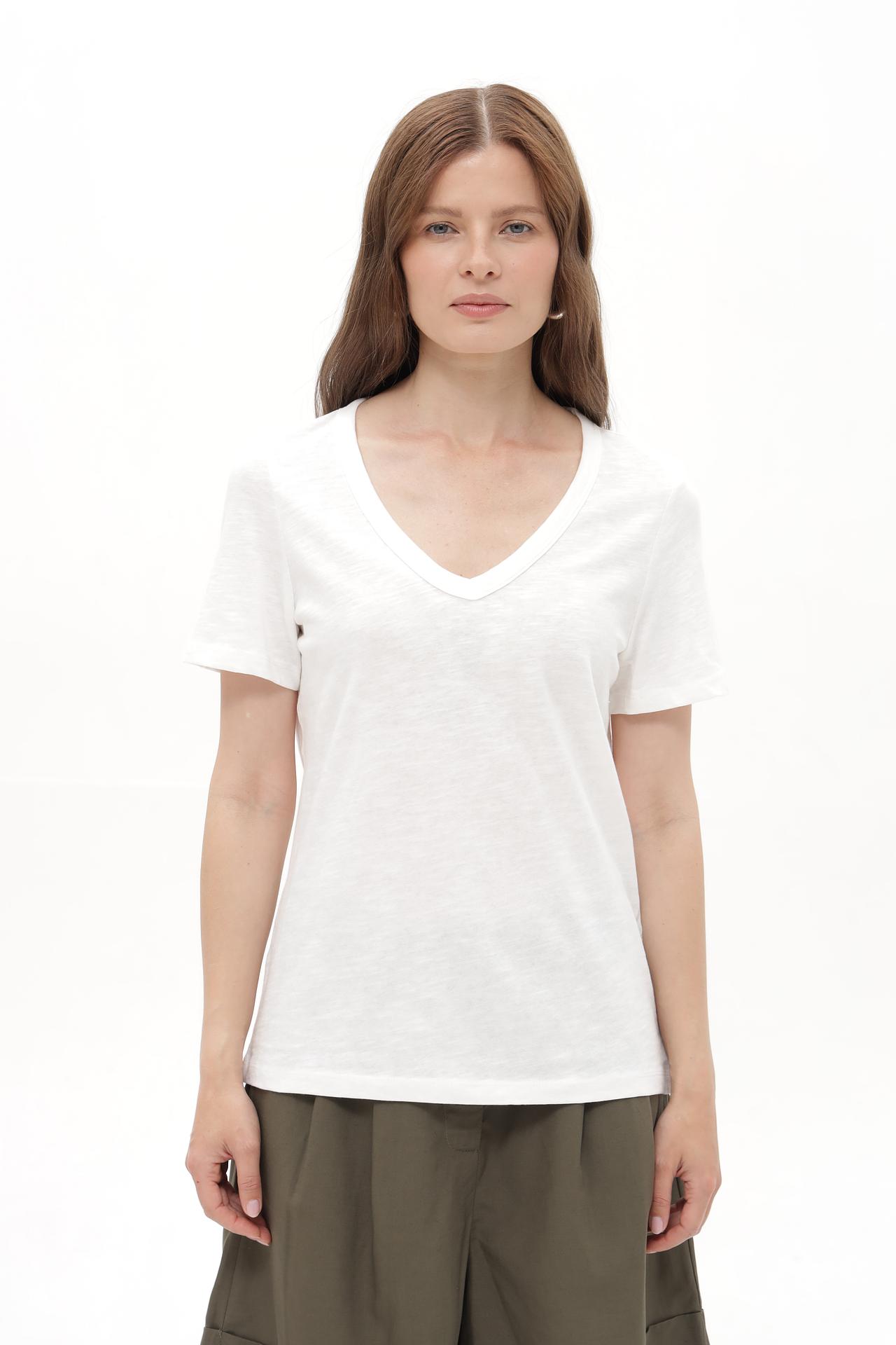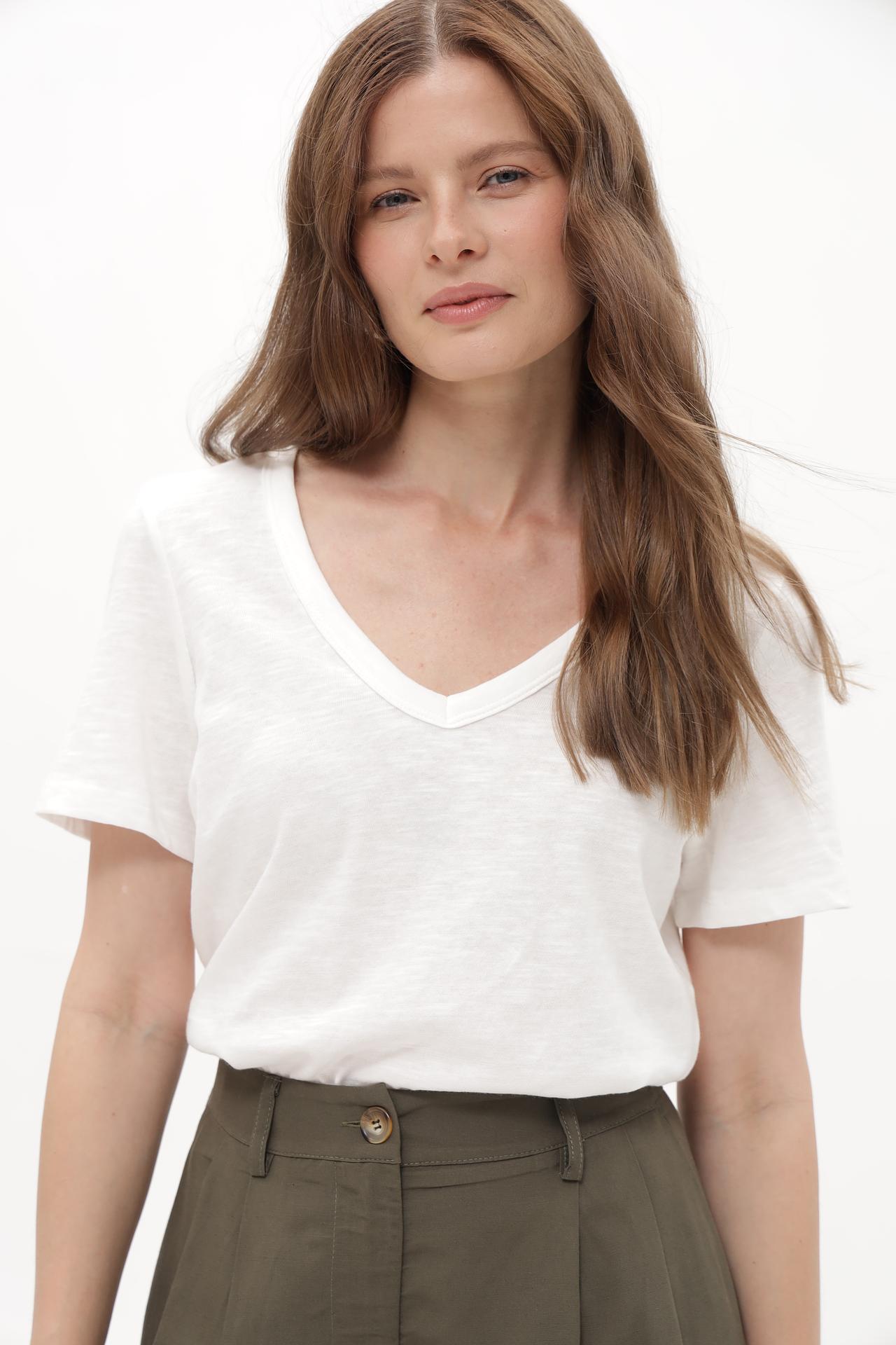 Белая футболка Tom Tailor с V-образным вырезом
