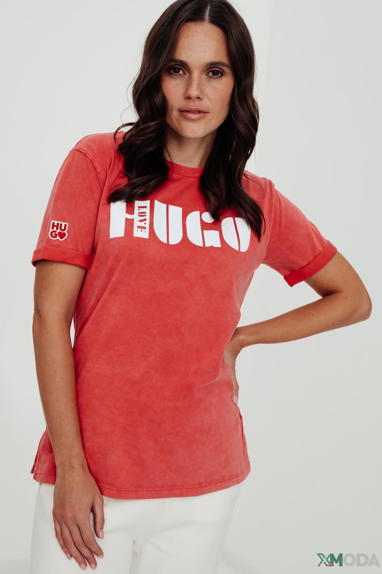 Футболка Hugo красного цвета с принтом