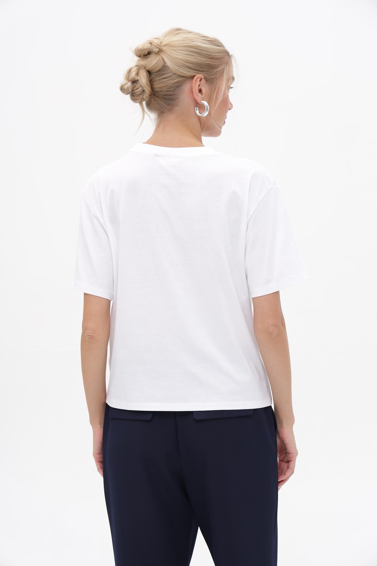 Эта футболка отлично подойдет для создания повседневного образа с джинсами или брюками, а также станет стильным дополнением к юбке или шортам в теплую погоду. Благодаря своему минималистичному дизайну, её легко сочетать с различными аксессуарами и элементами гардероба.