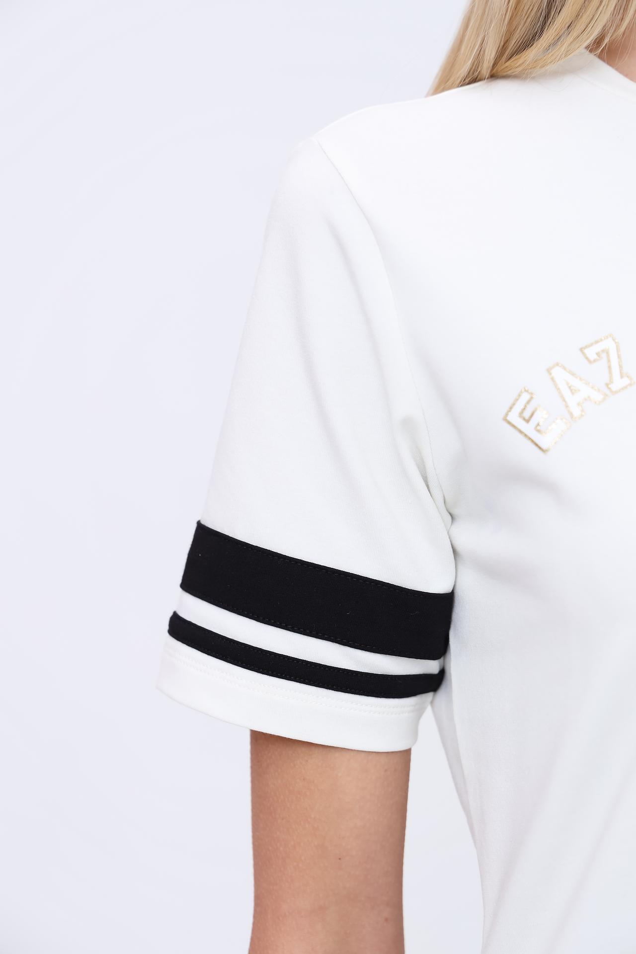 Футболка украшена элегантной надписью EA7 Emporio Armani, придающей ей изысканный вид. Добавьте спортивный шик в свой повседневный образ с этой универсальной футболкой.