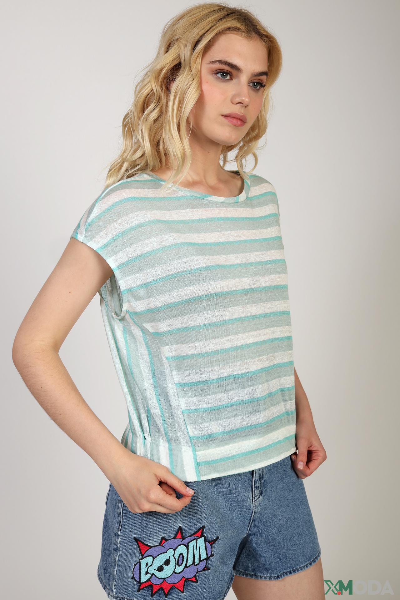 - Полосатый дизайн: Классический полосатый узор придает футболке стильный и современный вид.