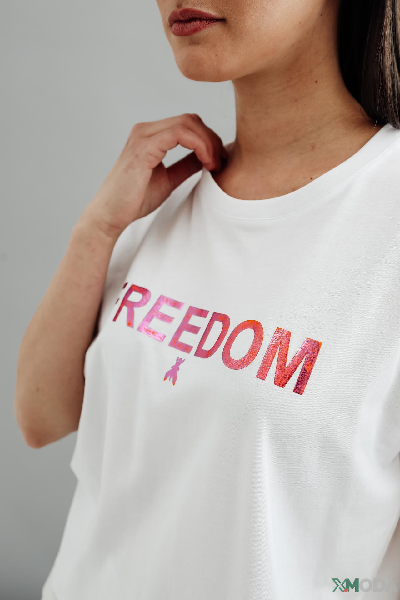 - Дизайн: Футболка украшена стильным принтом, который добавляет оригинальности образу.