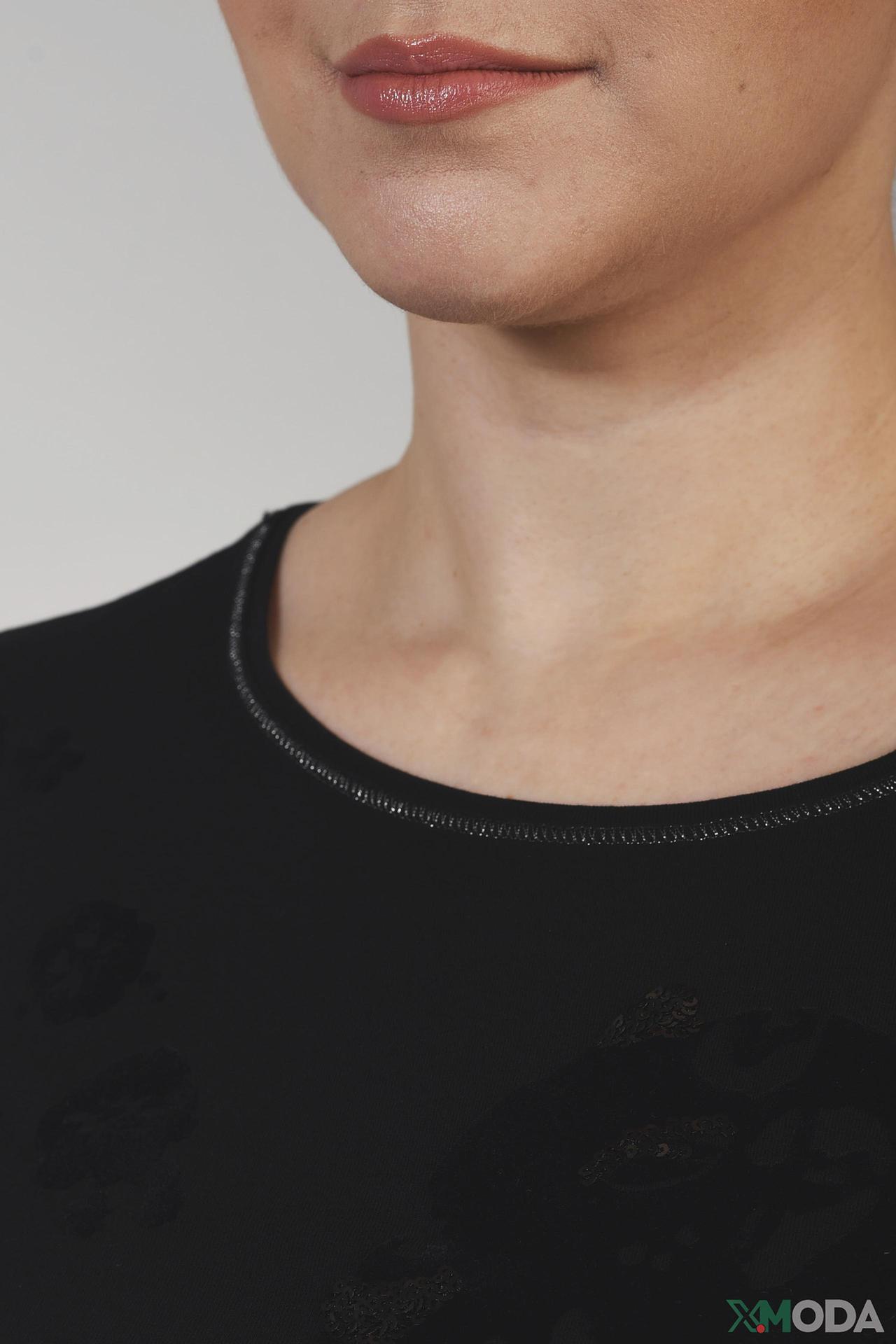 - Дизайн: Классический силуэт с рукавами три четверти и круглым вырезом горловины. Оригинальный принт из пайеток на передней части джемпера придает модели особый шарм.