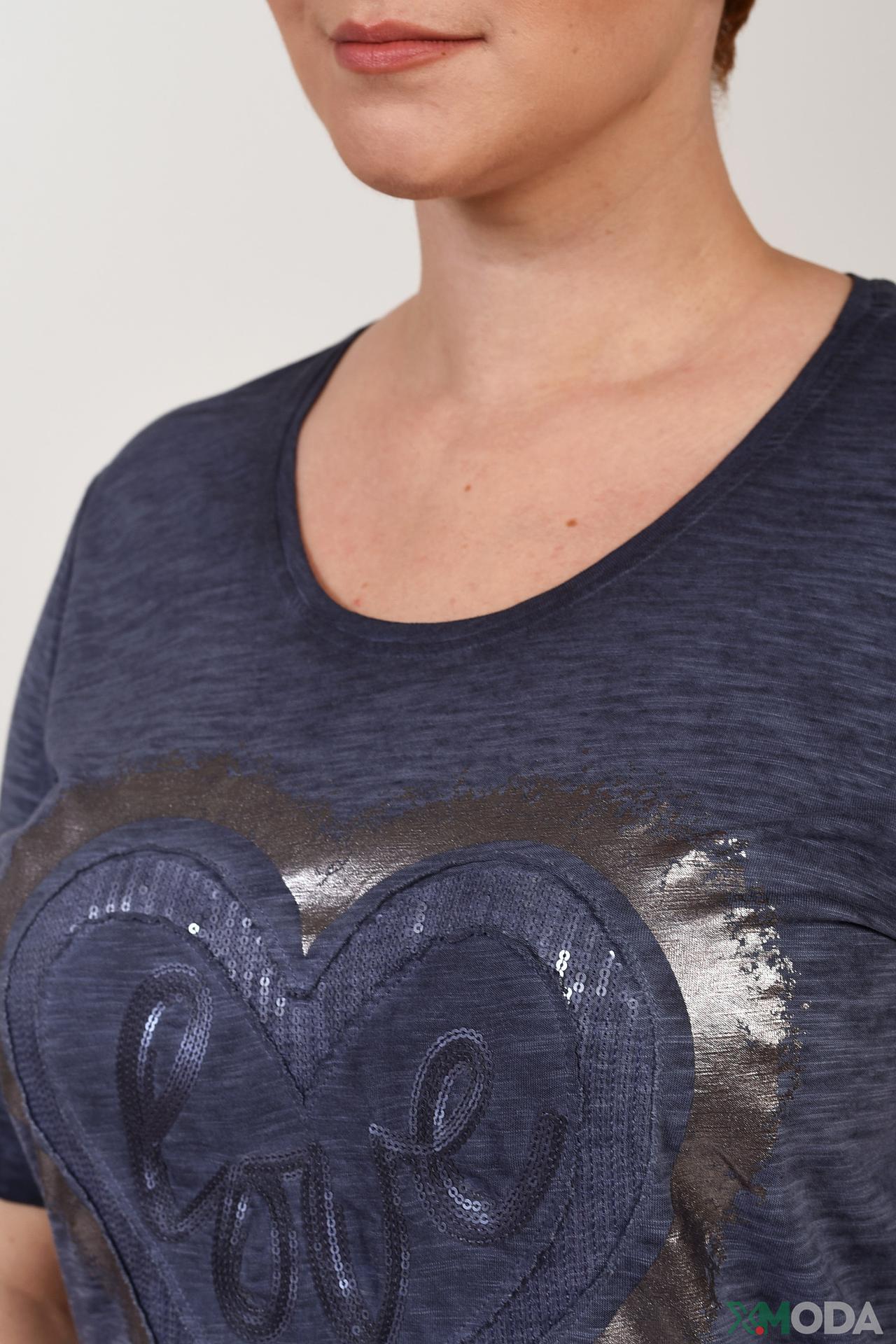 Стильная футболка от Via Appia станет основой вашего повседневного гардероба. Модель выполнена из приятного к телу смесового материала, сочетающего хлопок и вискозу, что гарантирует комфорт в течение всего дня. Оригинальный принт в виде сердца с надписью "love", украшенный пайетками и мерцающими элементами, придает футболке особое очарование и делает образ более выразительным. Круглый вырез и короткие рукава обеспечивают свободу движений.