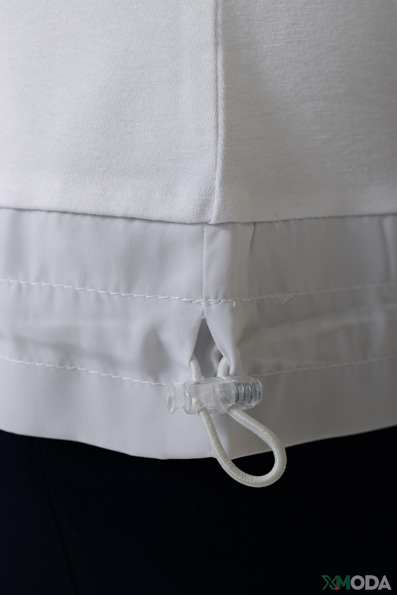 - Регулируемый подол: Особенностью футболки является регулируемый подол на кулиске, который позволяет изменять силуэт и длину изделия. Это добавляет функциональности и позволяет экспериментировать со стилем.