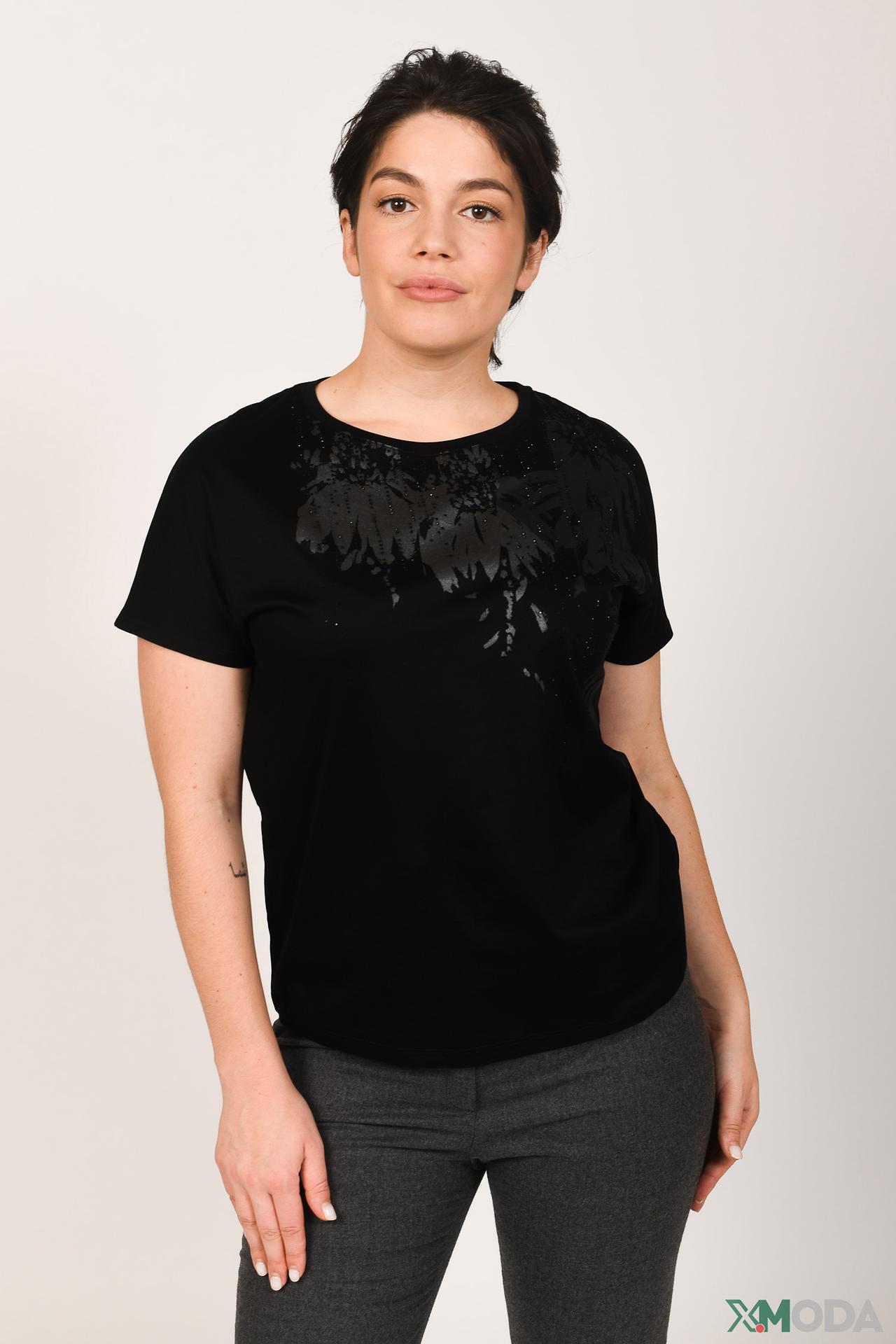 Чёрная футболка Marc Cain с цветочным принтом