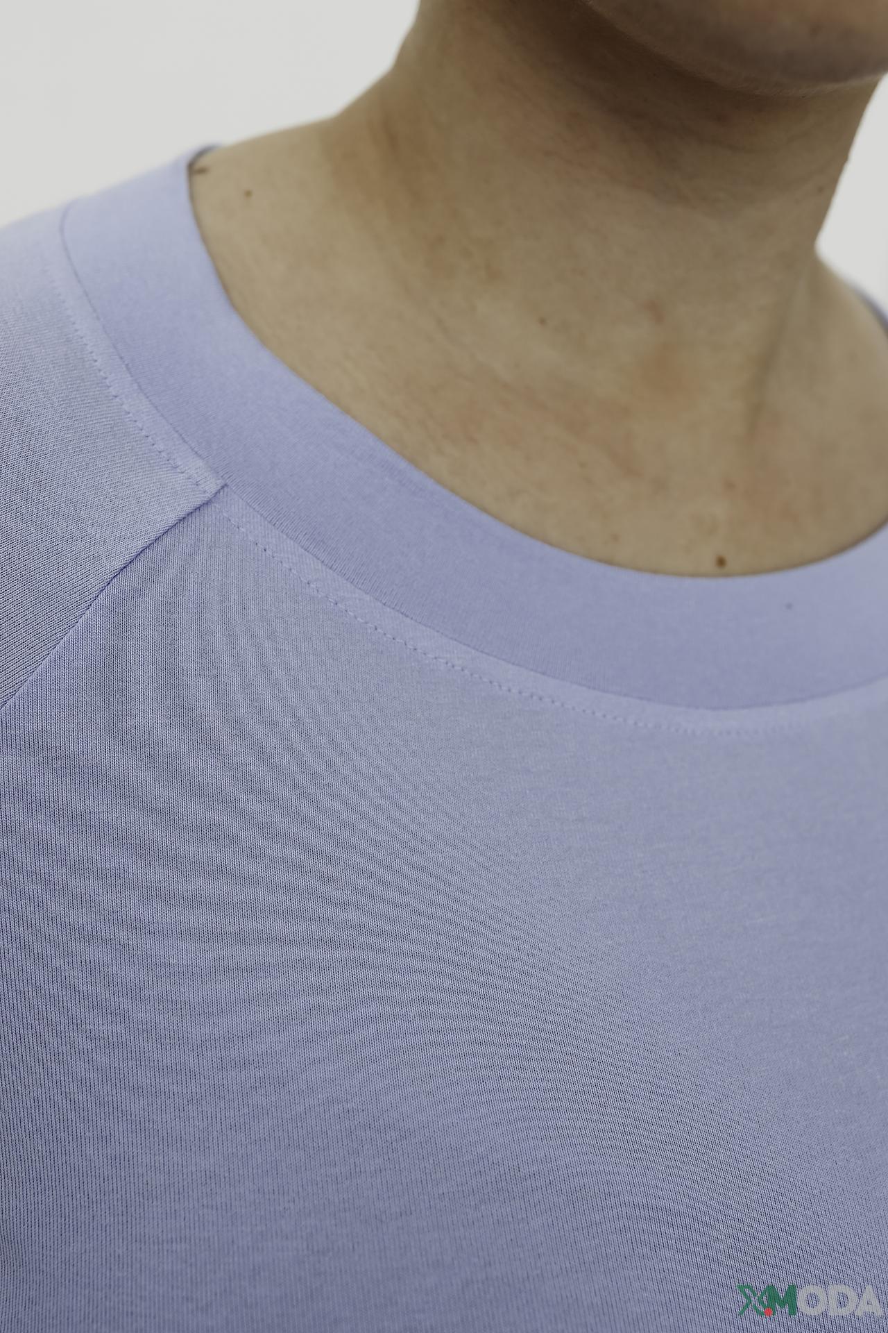 Футболка выполнена из приятной к телу ткани, в составе которой 93% вискозы и 7% эластана, что обеспечивает мягкость и эластичность. Материал хорошо пропускает воздух и позволяет коже дышать, что особенно важно в тёплую погоду. Эластан в составе обеспечивает хорошую посадку и сохранение формы изделия даже после многократных стирок.
