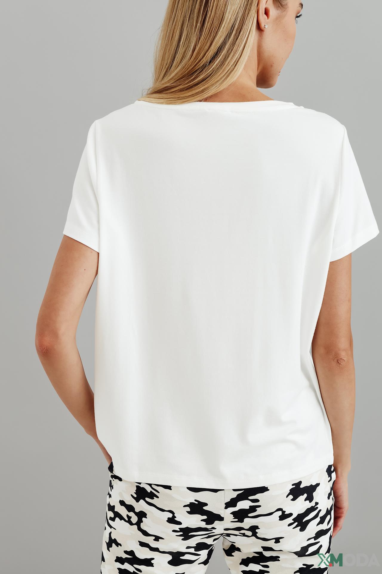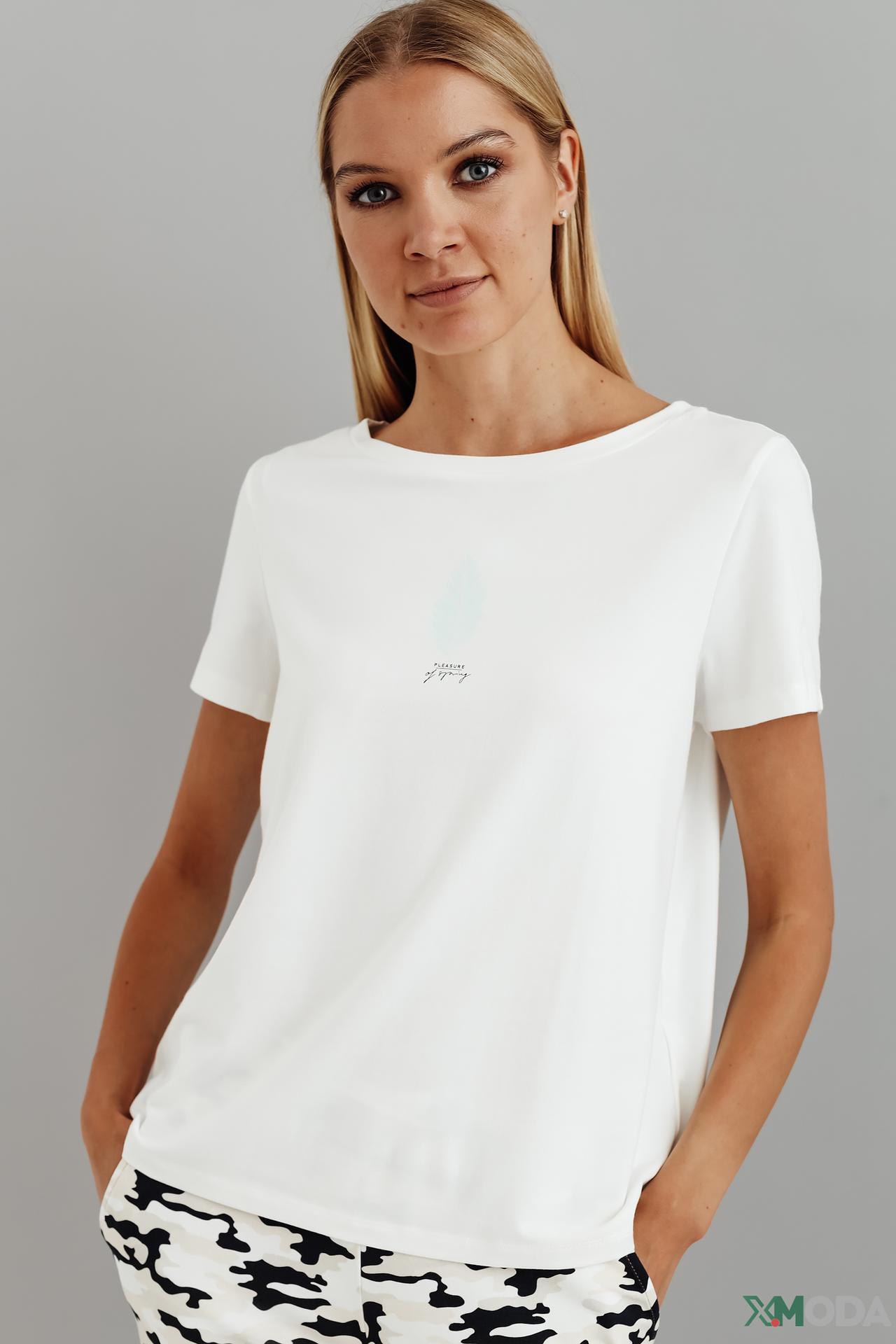 - Универсальный дизайн: Белый цвет и классический крой позволяют легко комбинировать футболку с брюками, джинсами или юбками, создавая разнообразные луки от спортивного до casual-шика. Акцентный принт добавляет уникальности.