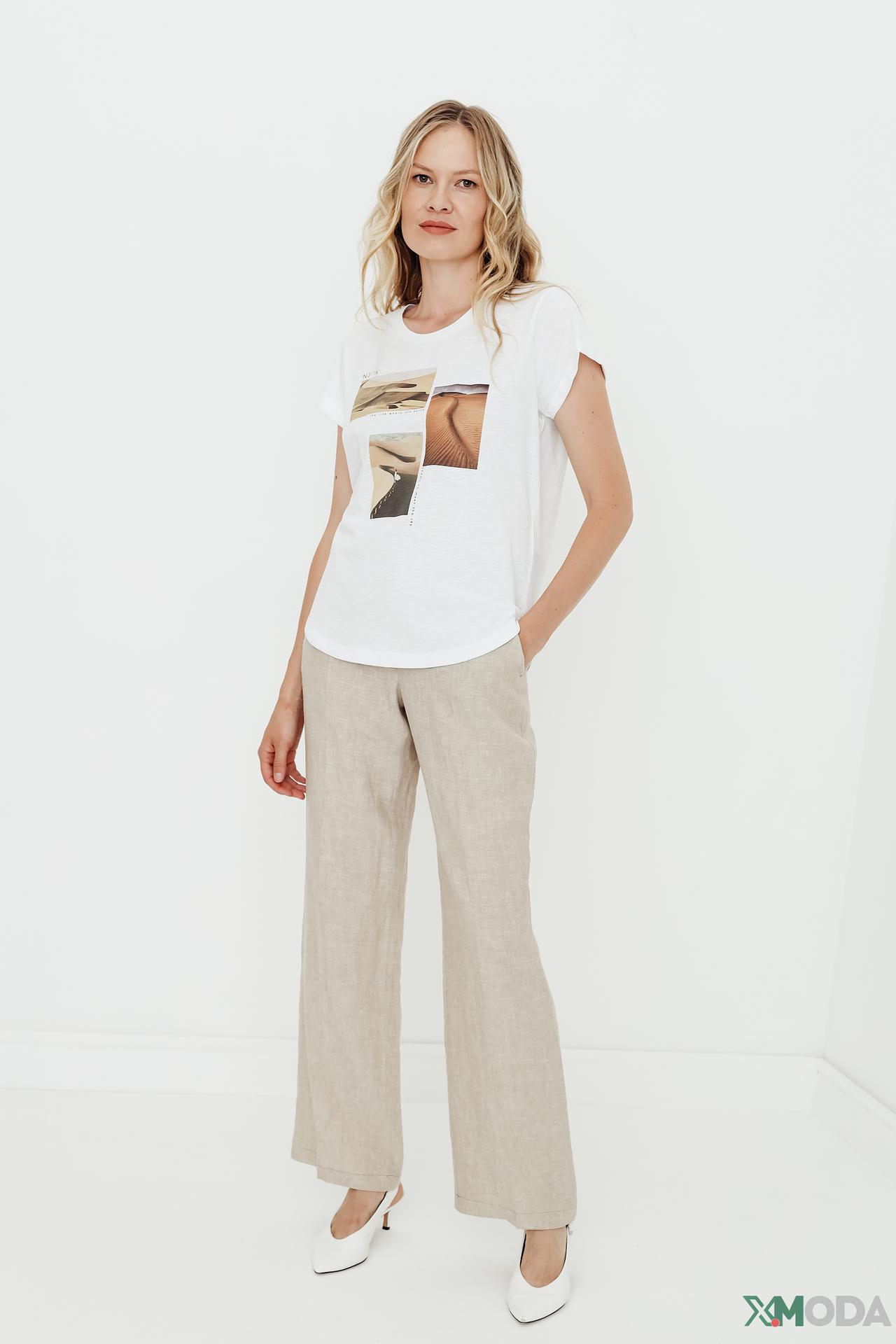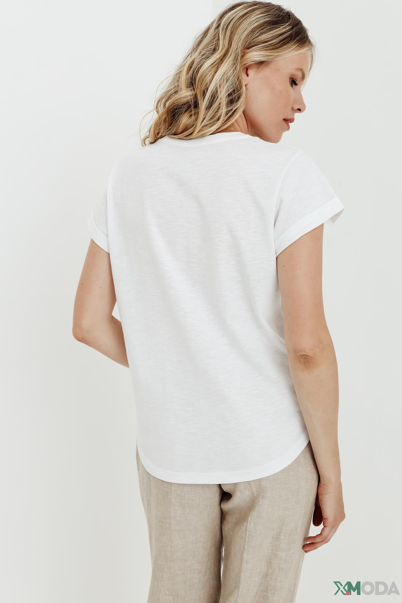 - Универсальный дизайн: Футболка легко сочетается с джинсами, брюками или юбками, позволяя создавать различные стильные образы.