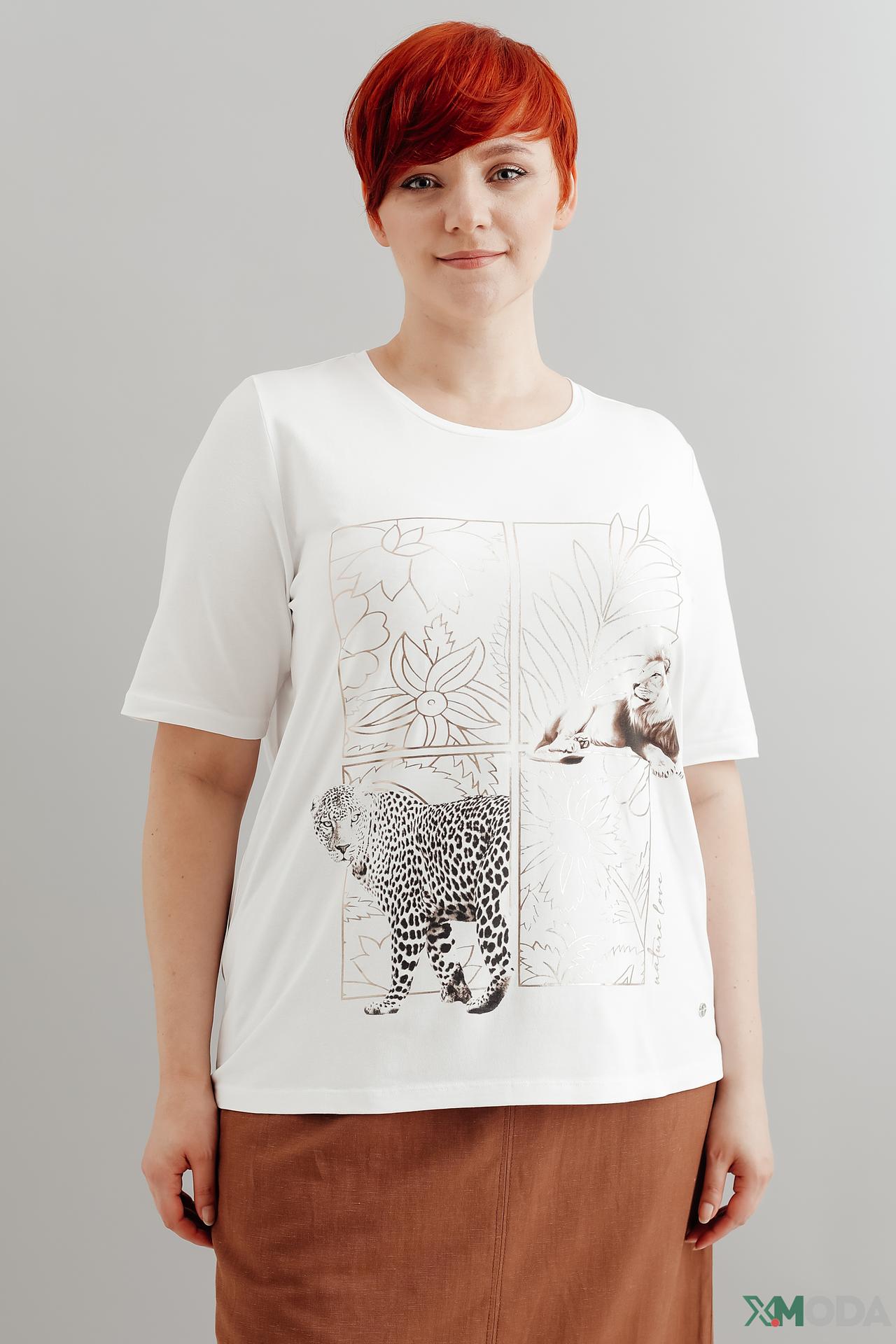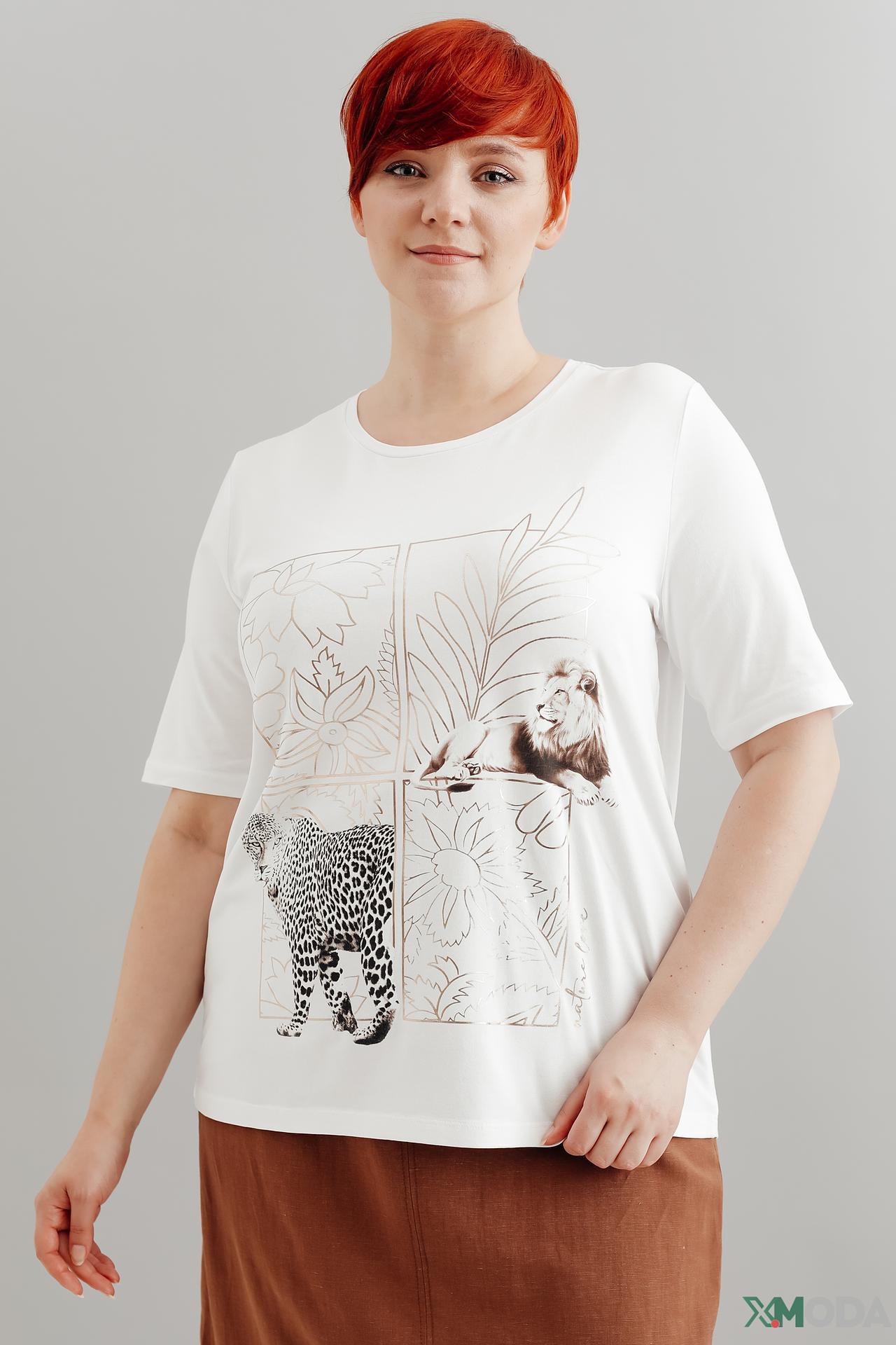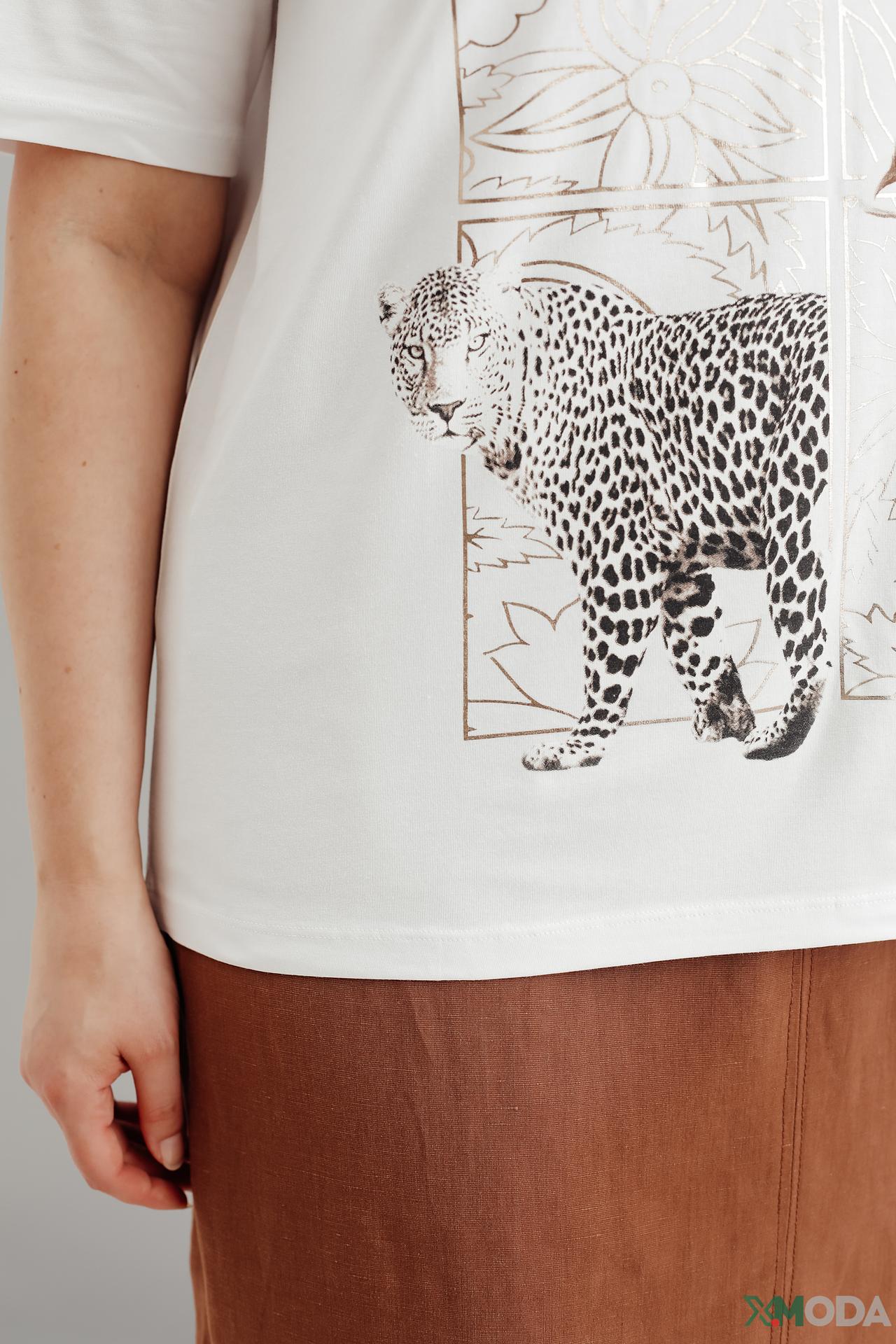 Футболка Frapp белая с анималистичным принтом лев и леопард
