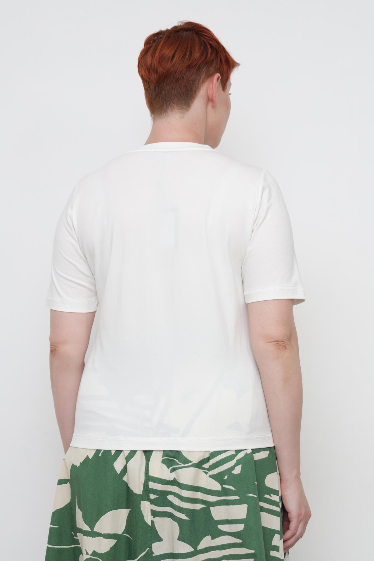 Эта футболка станет прекрасным дополнением к вашему гардеробу. Она идеально подходит для создания различных образов: от повседневных до более нарядных.