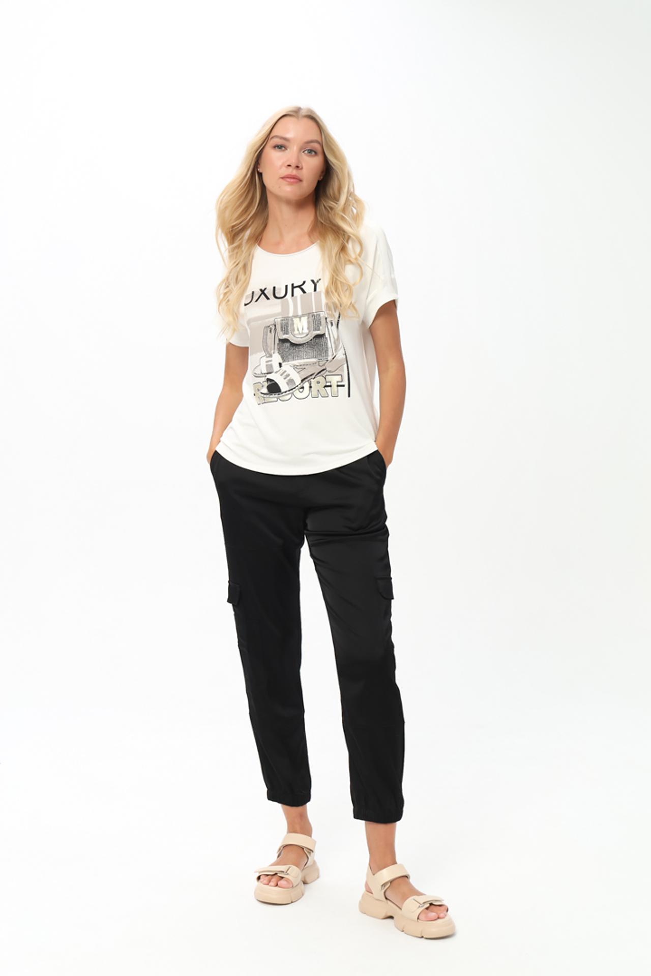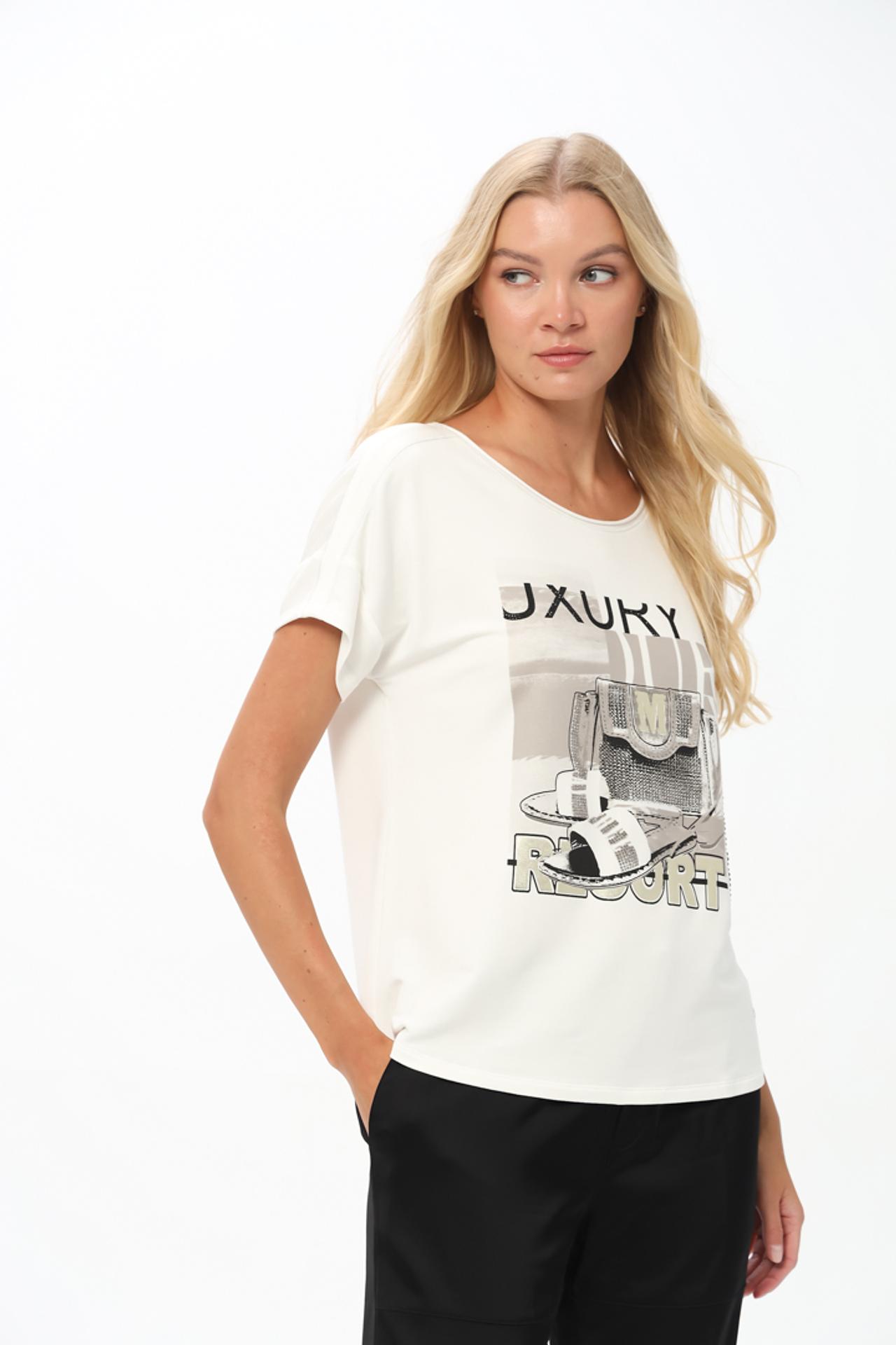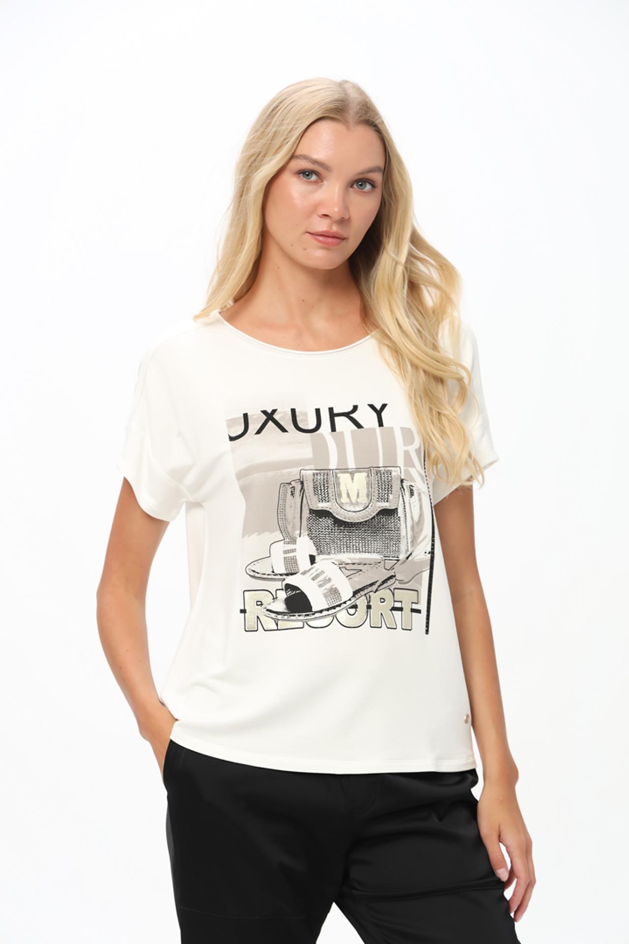 Футболка Monari – это сочетание комфорта и стиля. Изготовленная из высококачественной ткани (45% вискоза, 45% модал, 10% эластан), она приятна на ощупь и обеспечивает отличную посадку по фигуре. Оригинальный принт добавляет образу индивидуальности и делает эту футболку прекрасным выбором для создания модных образов. Идеальный вариант для повседневной носки, сочетается с джинсами, юбками и шортами.
