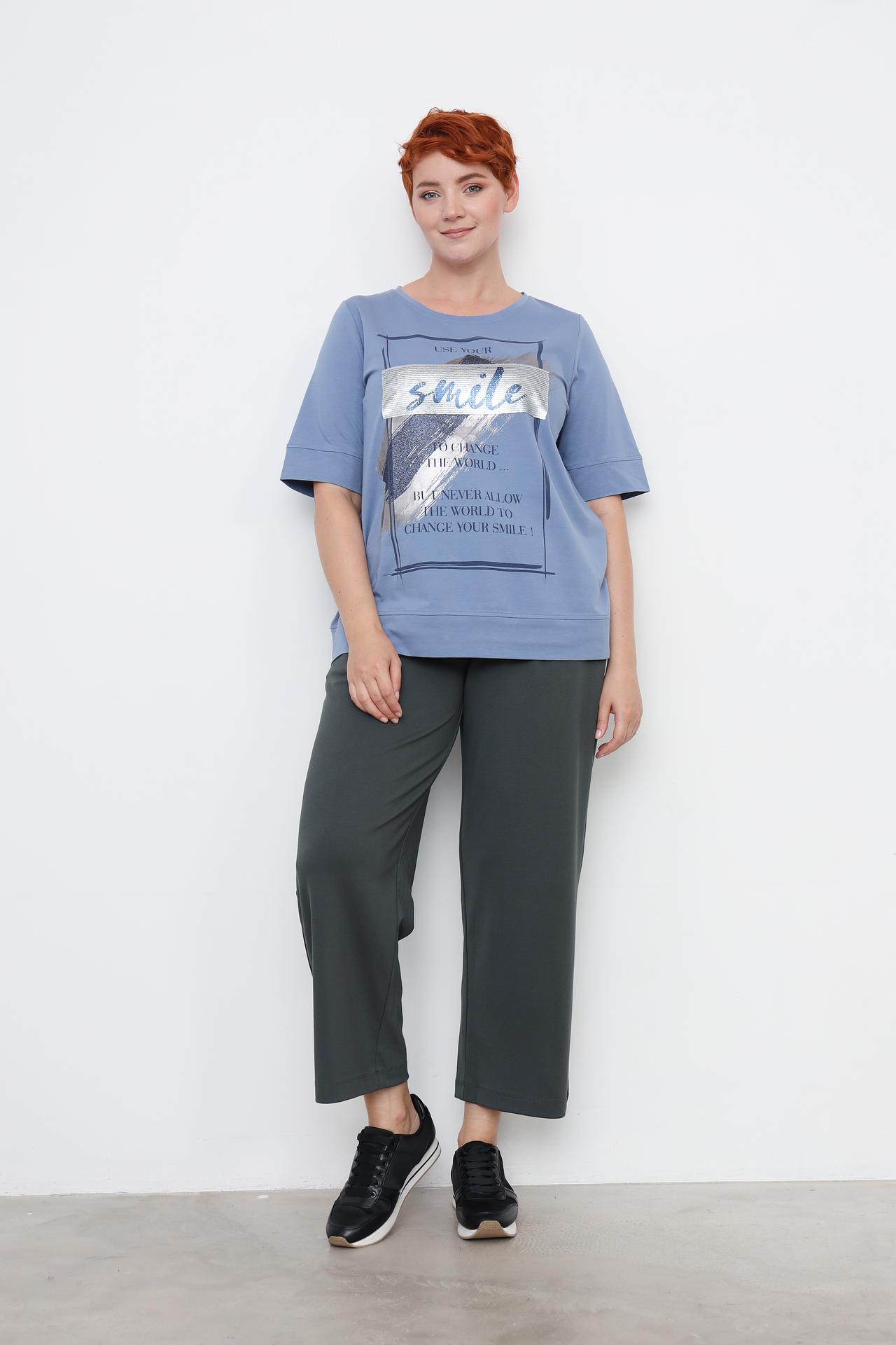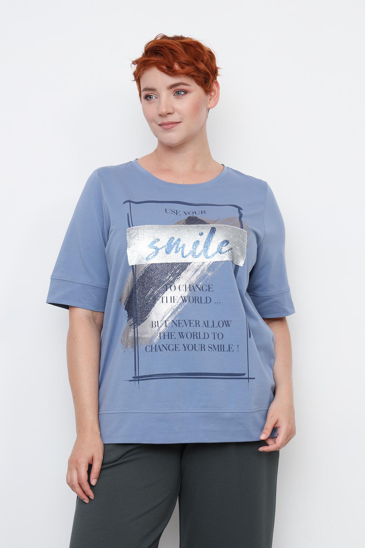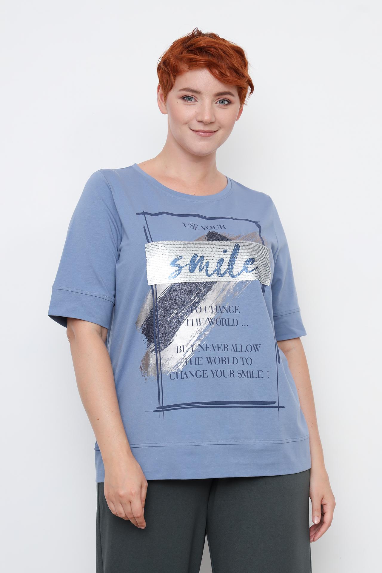 Футболка Frapp голубого цвета с надписью и пайетками