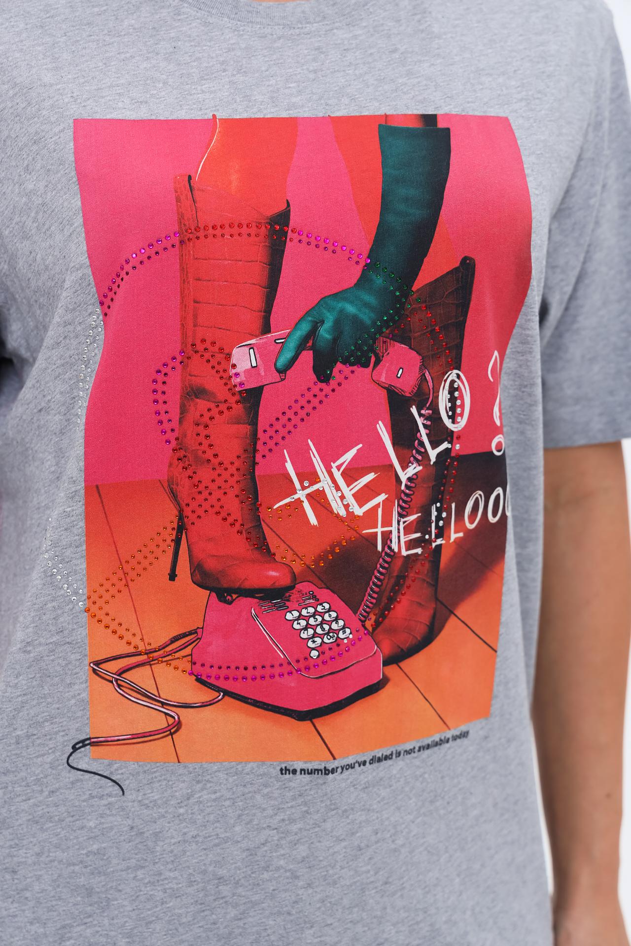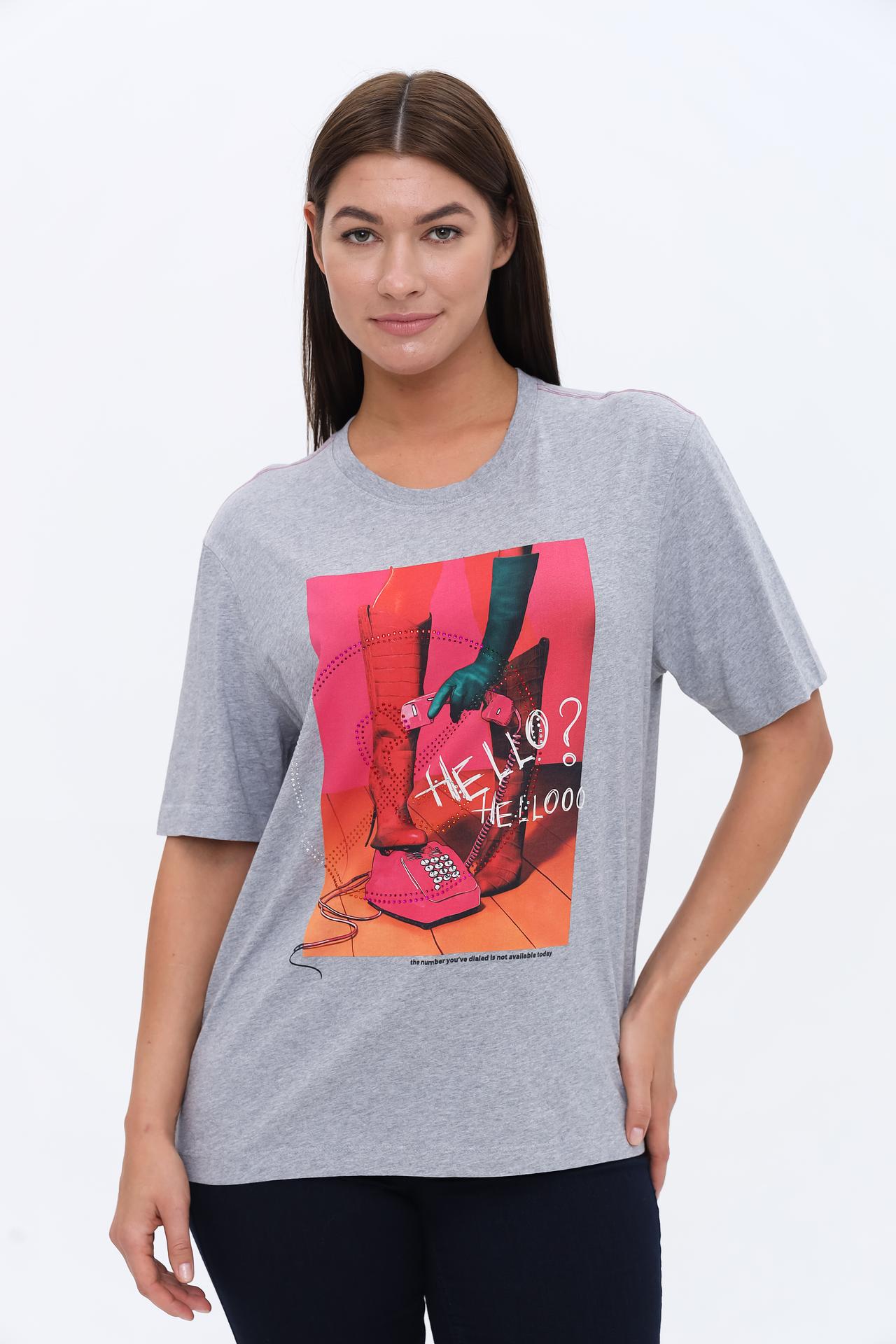 Стильная женская футболка от бренда Oui. Эта серая футболка станет ярким акцентом в вашем гардеробе благодаря оригинальному принту. Изготовленная из 100% хлопка, она обеспечивает комфорт и мягкость при носке.