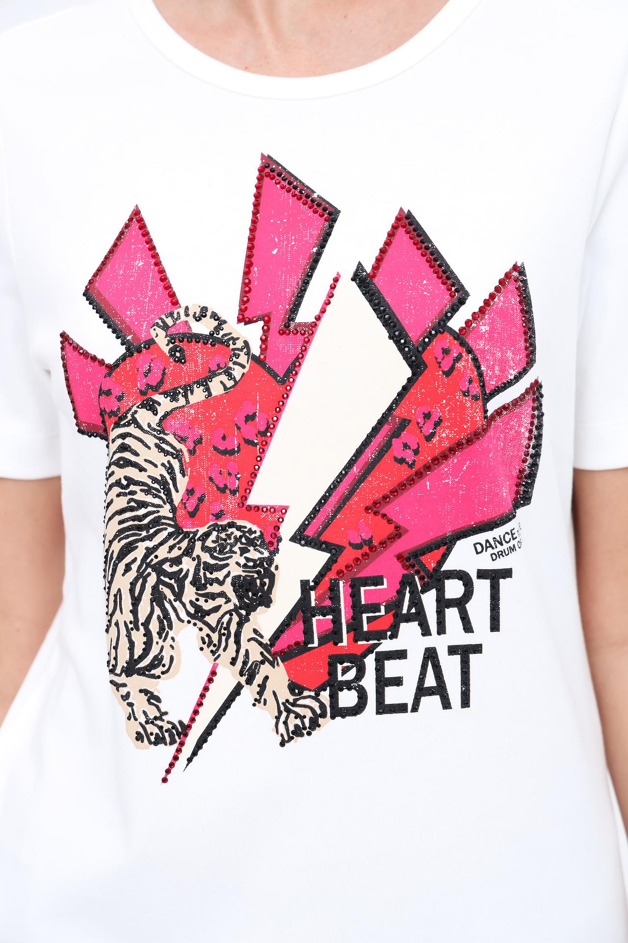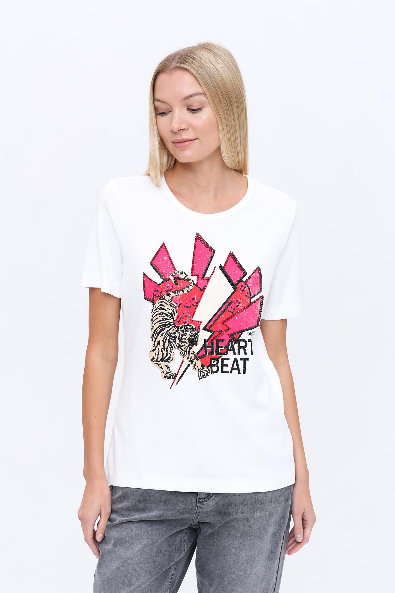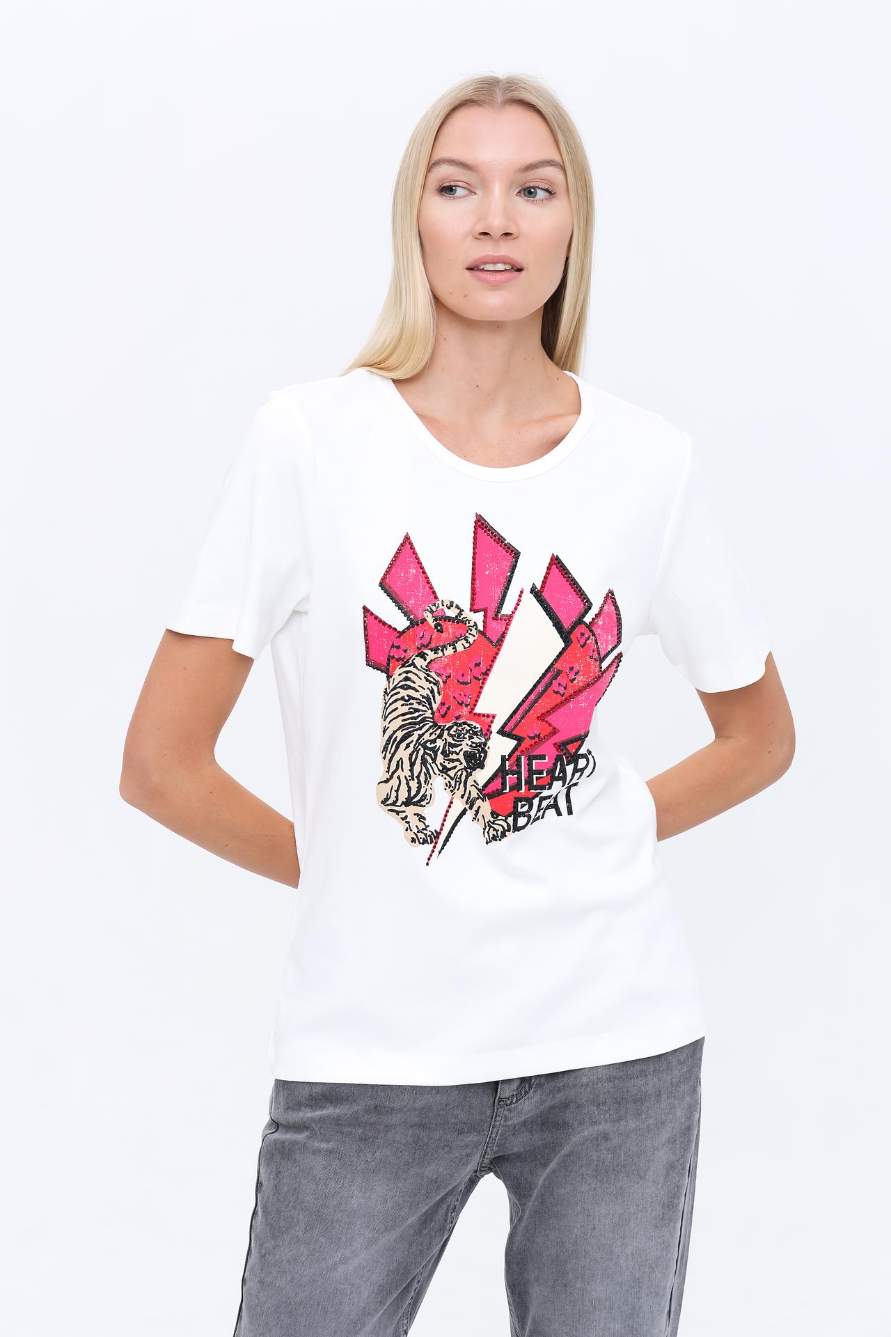 Стильная белая футболка Oui с оригинальным дизайном станет ярким акцентом в вашем гардеробе. Выполнена из мягкого и дышащего 100% хлопка, обеспечивая комфорт в течение всего дня. Футболка идеально подходит для создания повседневных образов, сочетаясь с джинсами, шортами или юбками. Яркий принт с тигром и декоративные элементы придают футболке неповторимый вид.