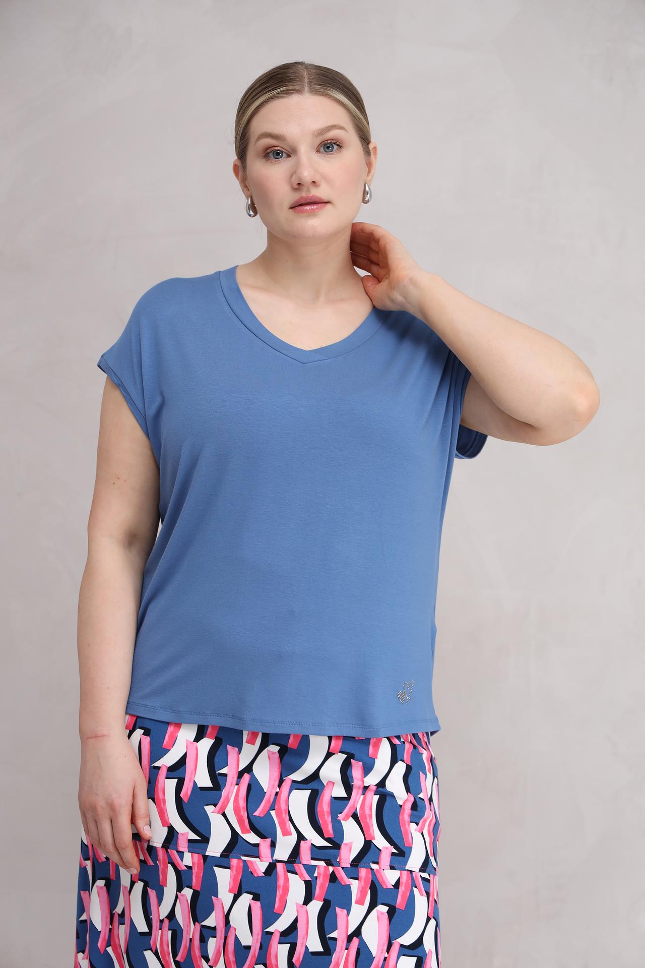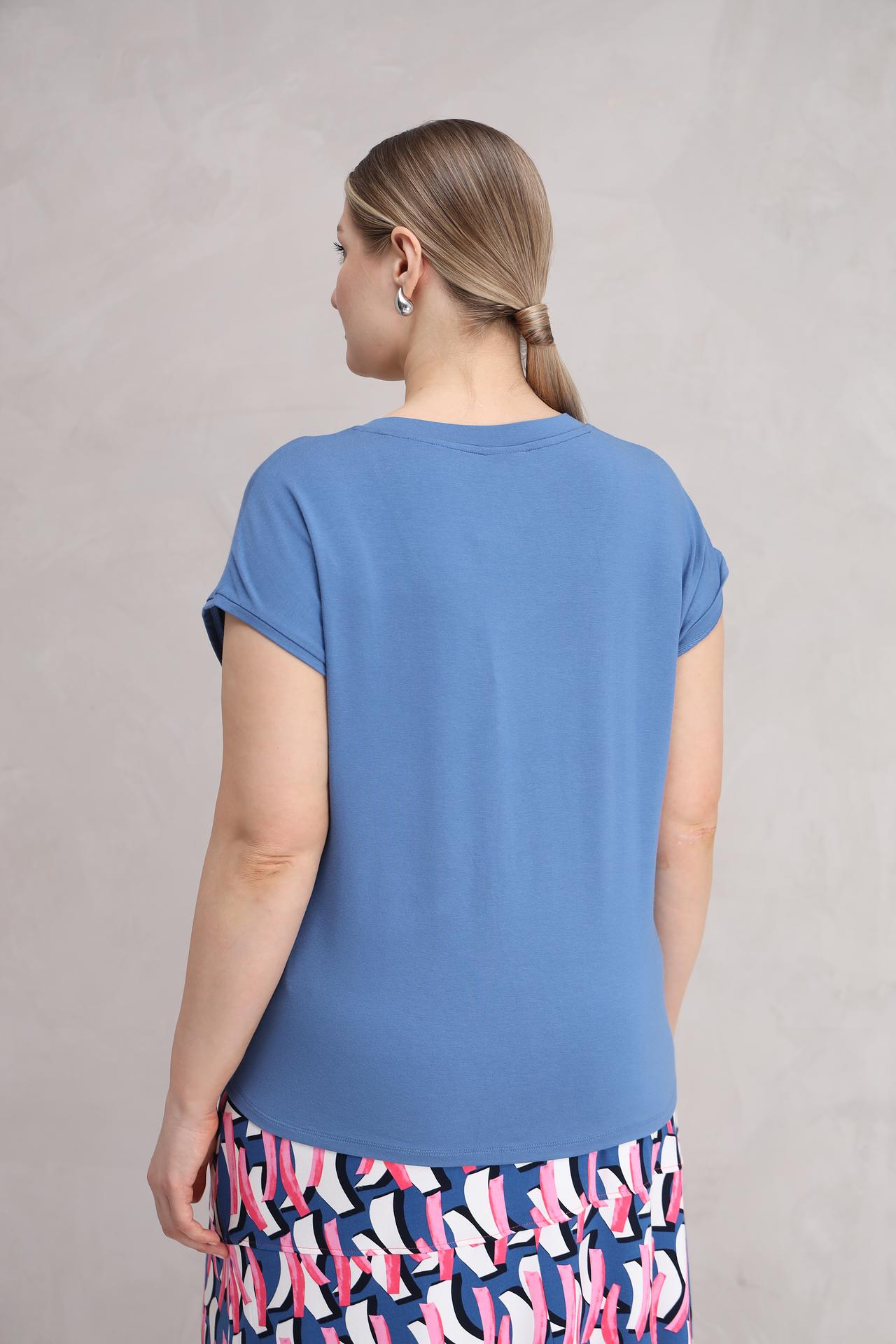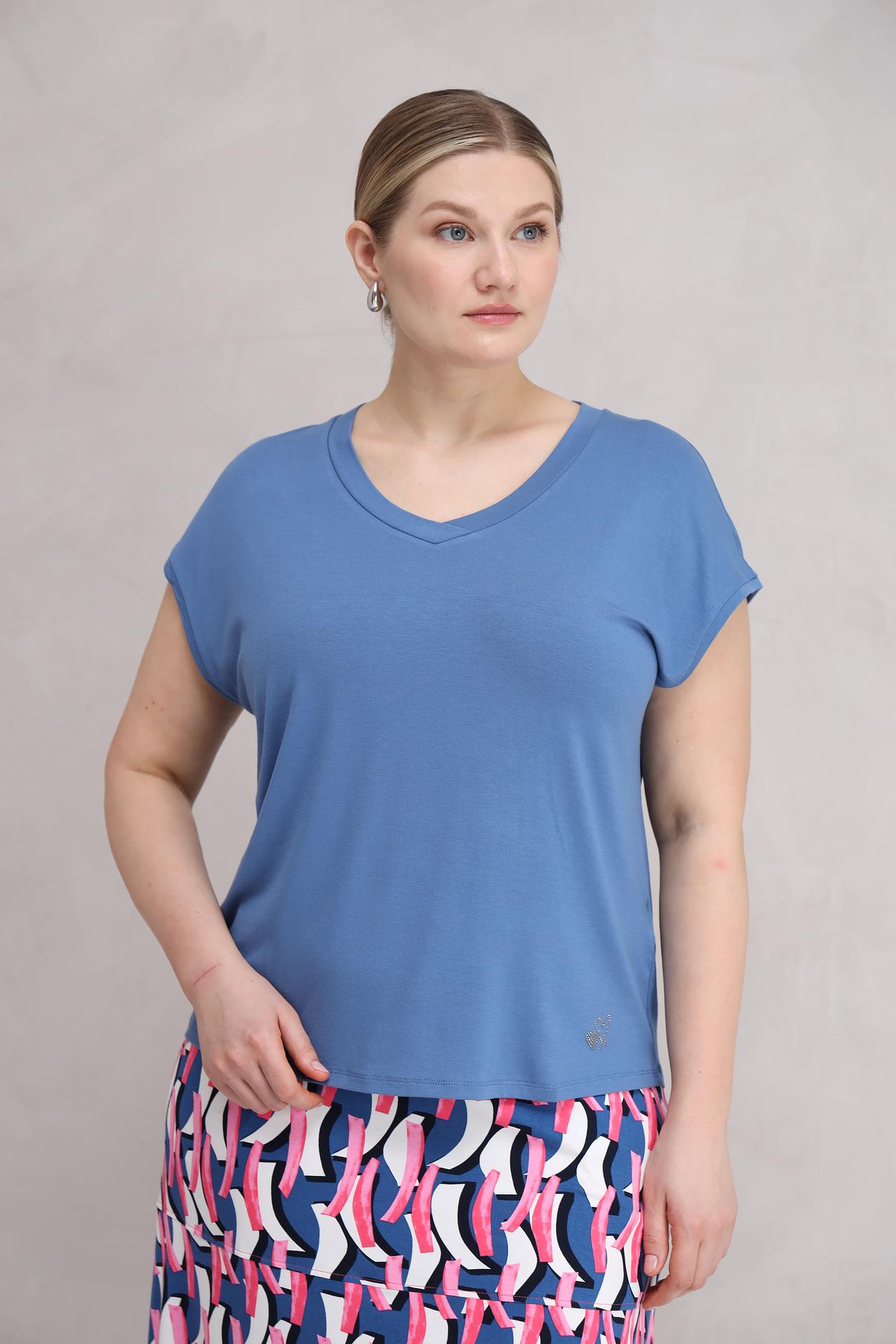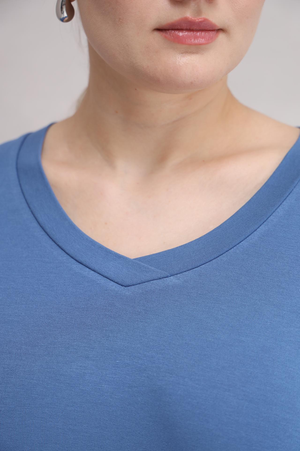 Классический крой с V-образным вырезом делает ее универсальной и подходящей для любого случая. Нежный голубой цвет придаст вашему образу свежесть и легкость. Небольшой декоративный элемент добавляет изюминку и подчеркивает вашу индивидуальность. Футболка Lebek – незаменимая вещь в гардеробе каждой женщины, ценящей стиль и комфорт.