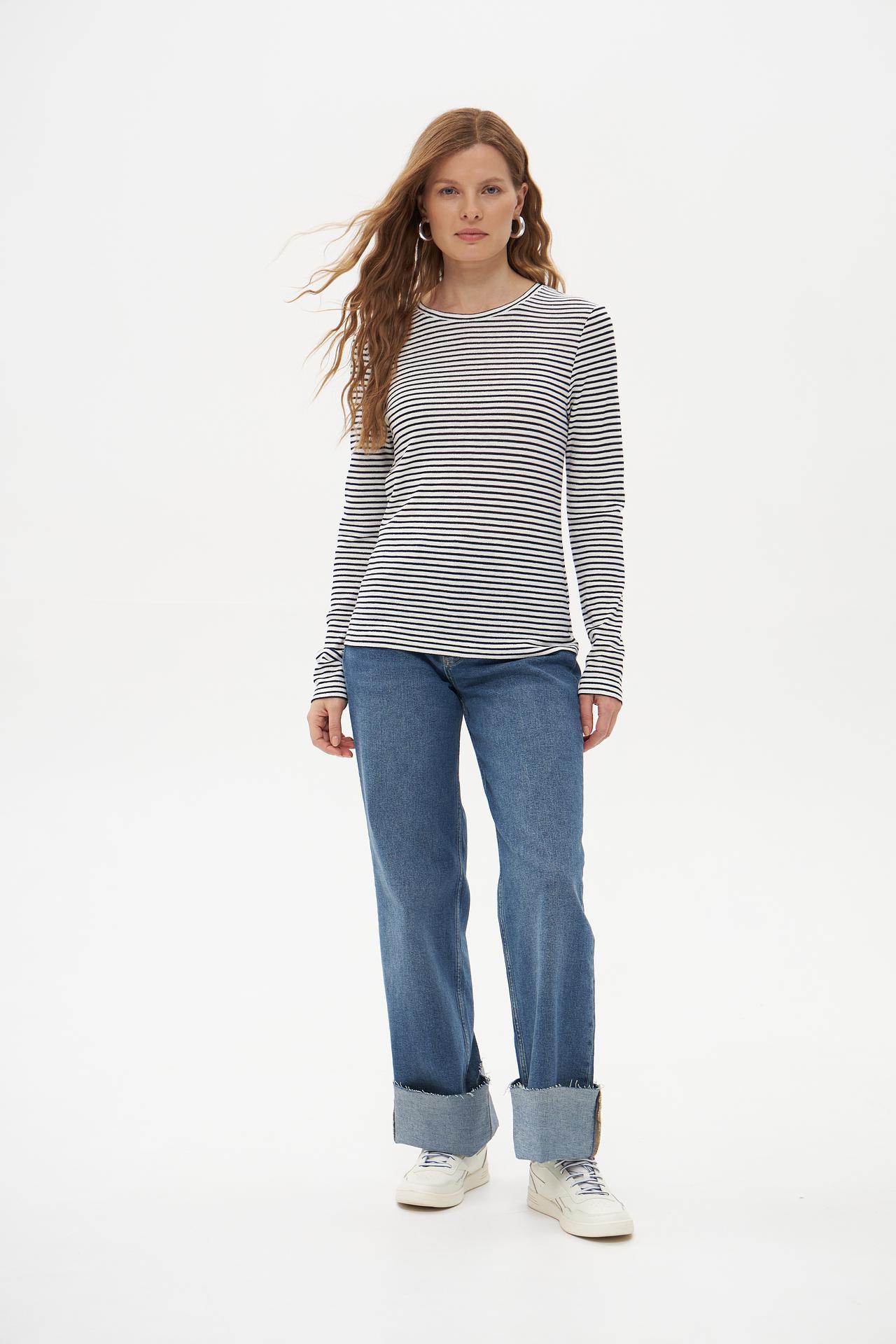 Этот универсальный лонгслив идеально сочетается с джинсами, юбками и брюками, создавая множество модных образов. Подойдет для создания как повседневных, так и более нарядных образов. Отличный выбор для тех, кто ценит комфорт и стиль.