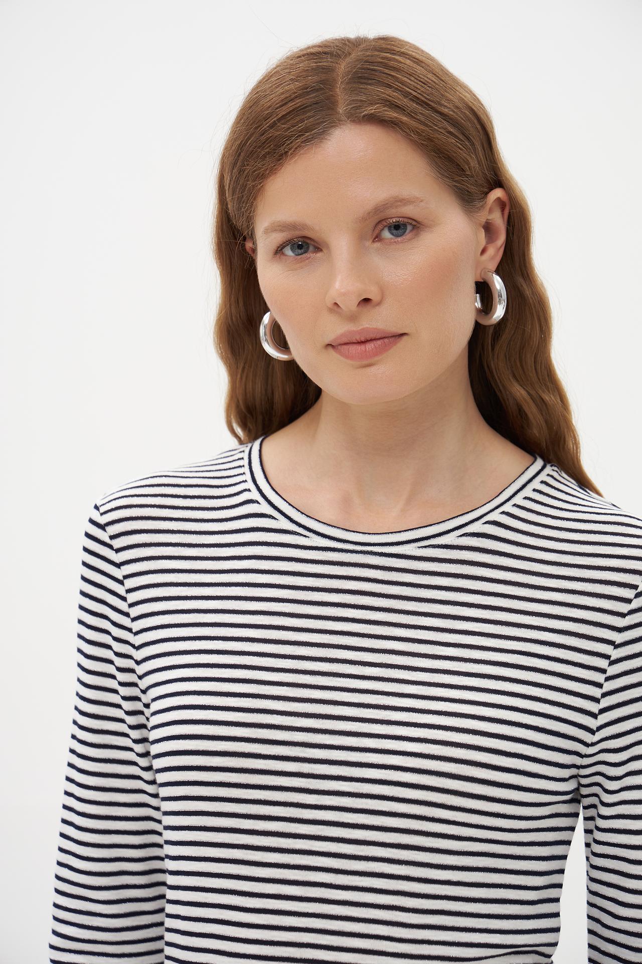 • Стильный дизайн: Актуальный полосатый принт добавляет образу изюминку и делает его более интересным.