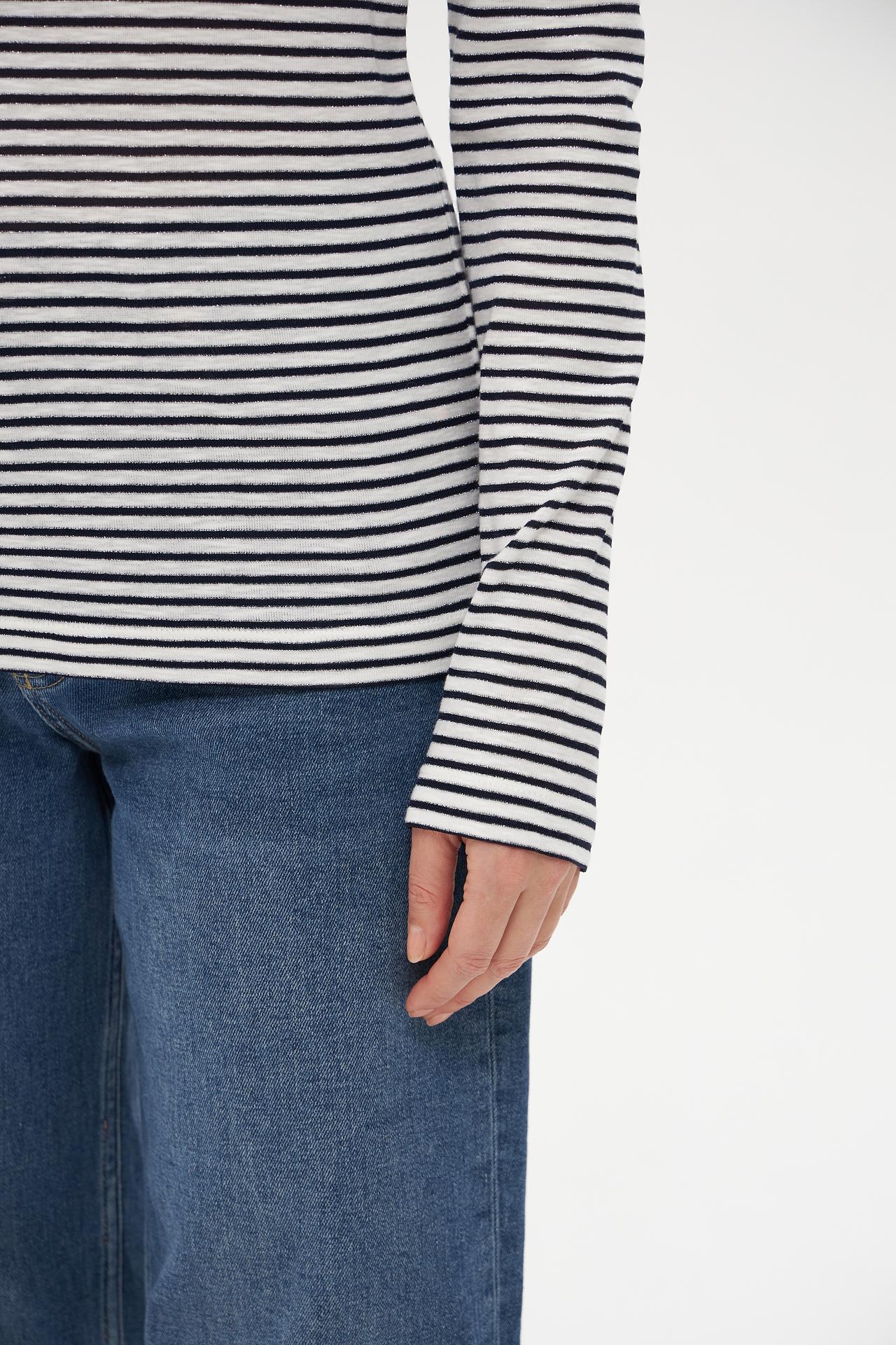 Представляем стильный лонгслив от Rich and Royal, выполненный из высококачественного смесового трикотажа. Этот лонгслив в полоску станет отличным дополнением к вашему повседневному гардеробу. Благодаря оптимальному составу ткани (20% полиэстер, 4% полиамид, 72% хлопок, 4% метализ.полиэстер), он приятен к телу, хорошо держит форму и прост в уходе.