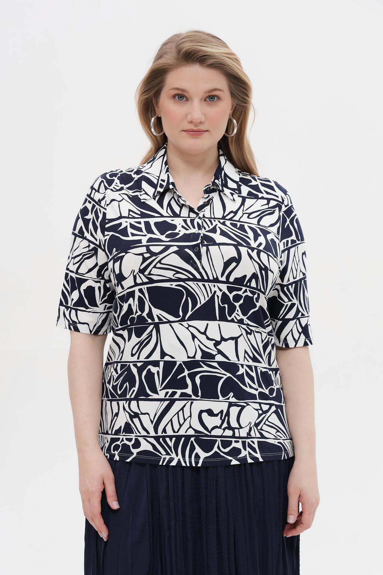 Эта женская футболка с коротким рукавом и классическим отложным воротником станет незаменимой основой для создания элегантных повседневных и офисных образов. Дышащая ткань гарантирует комфорт в течение всего дня, а стойкий принт сохраняет яркость после многочисленных стирок.