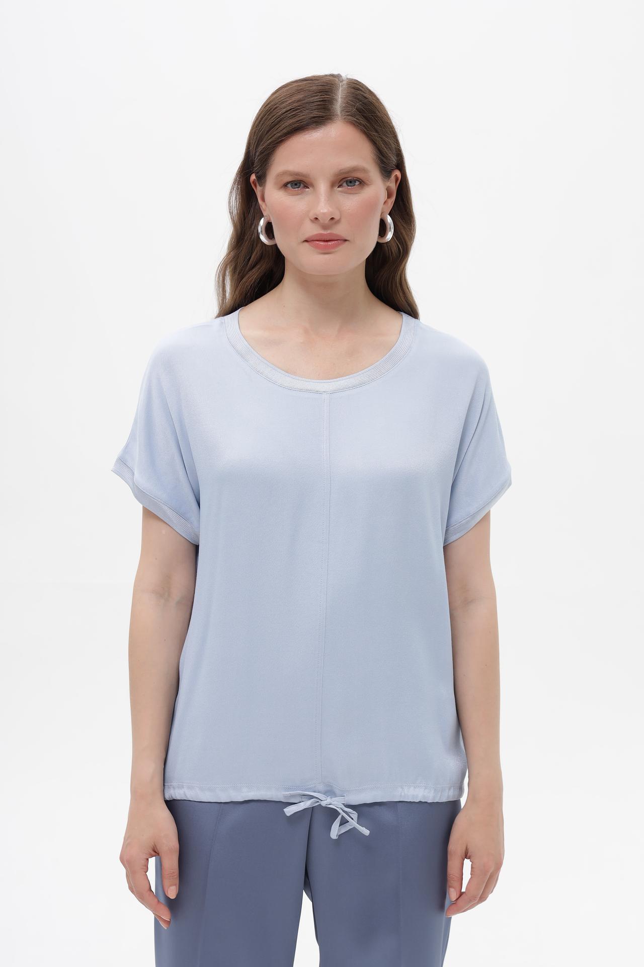 Футболка Bianca голубая с контрастной отделкой и кулиской