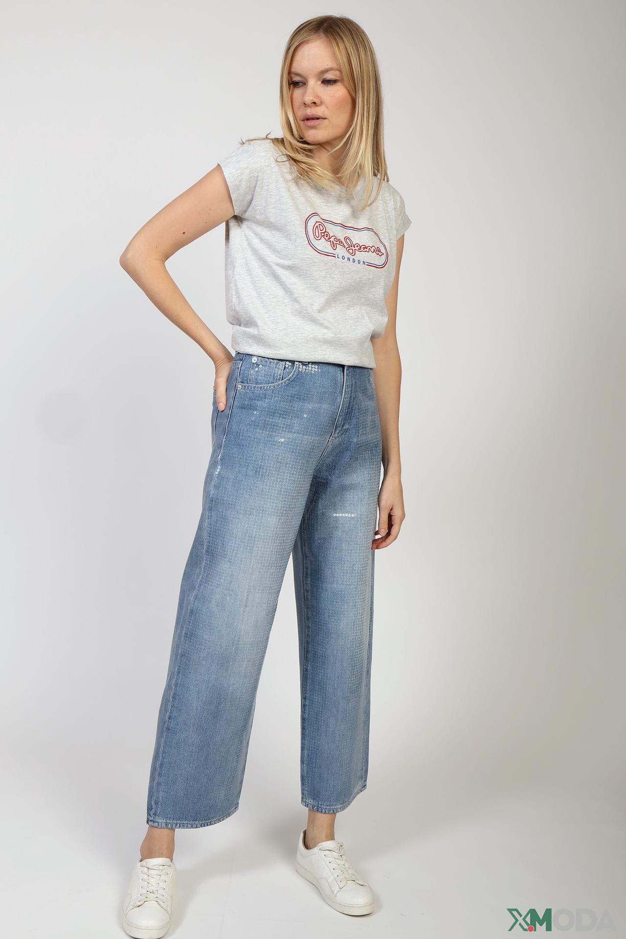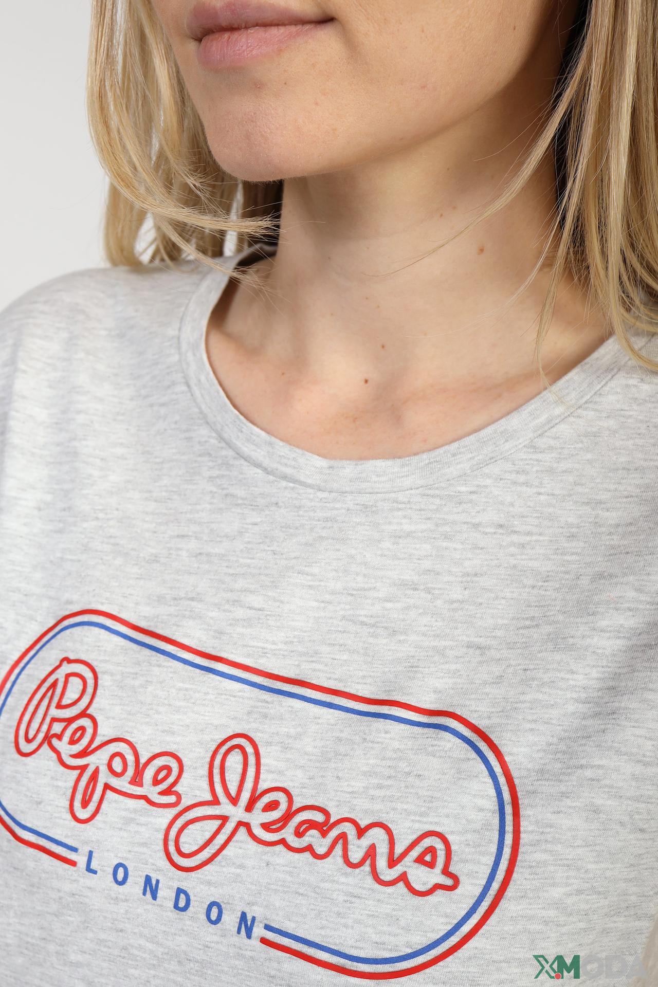 Футболка украшена узнаваемым логотипом бренда Pepe Jeans London, выполненным в контрастных красно-синих тонах. Этот элемент придает изделию современный и модный вид.