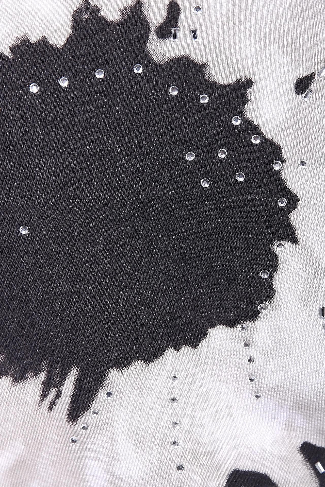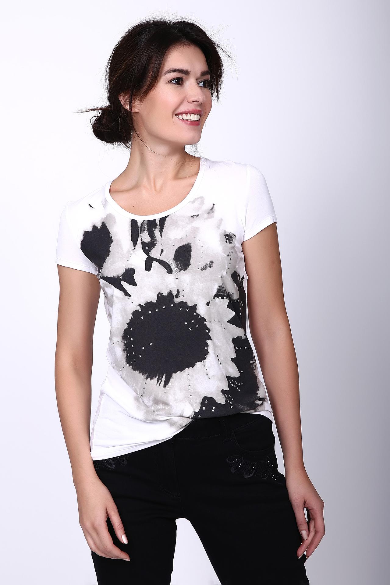 - Декор. Стразы по контуру принта добавляют футболке элегантности и блеска.