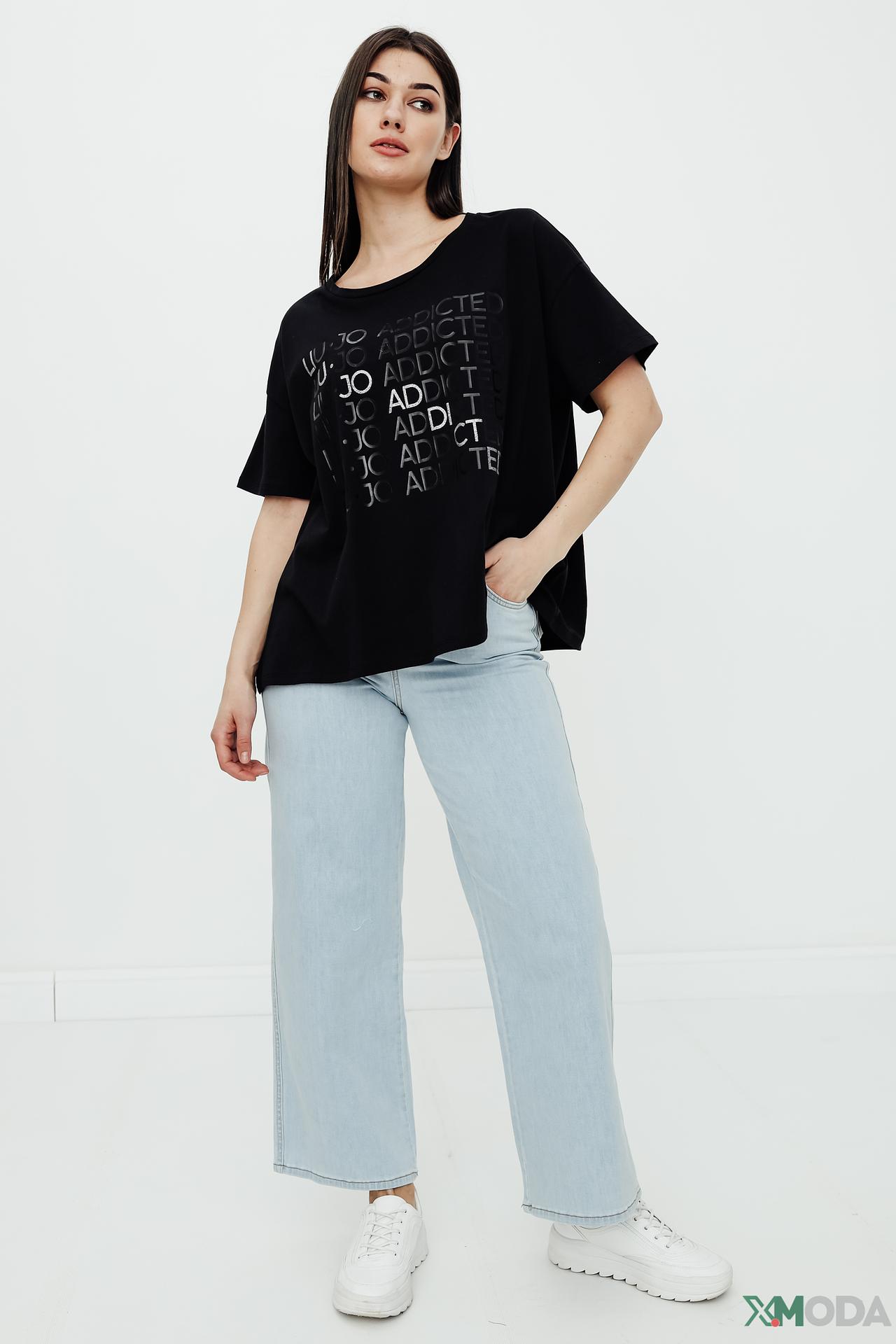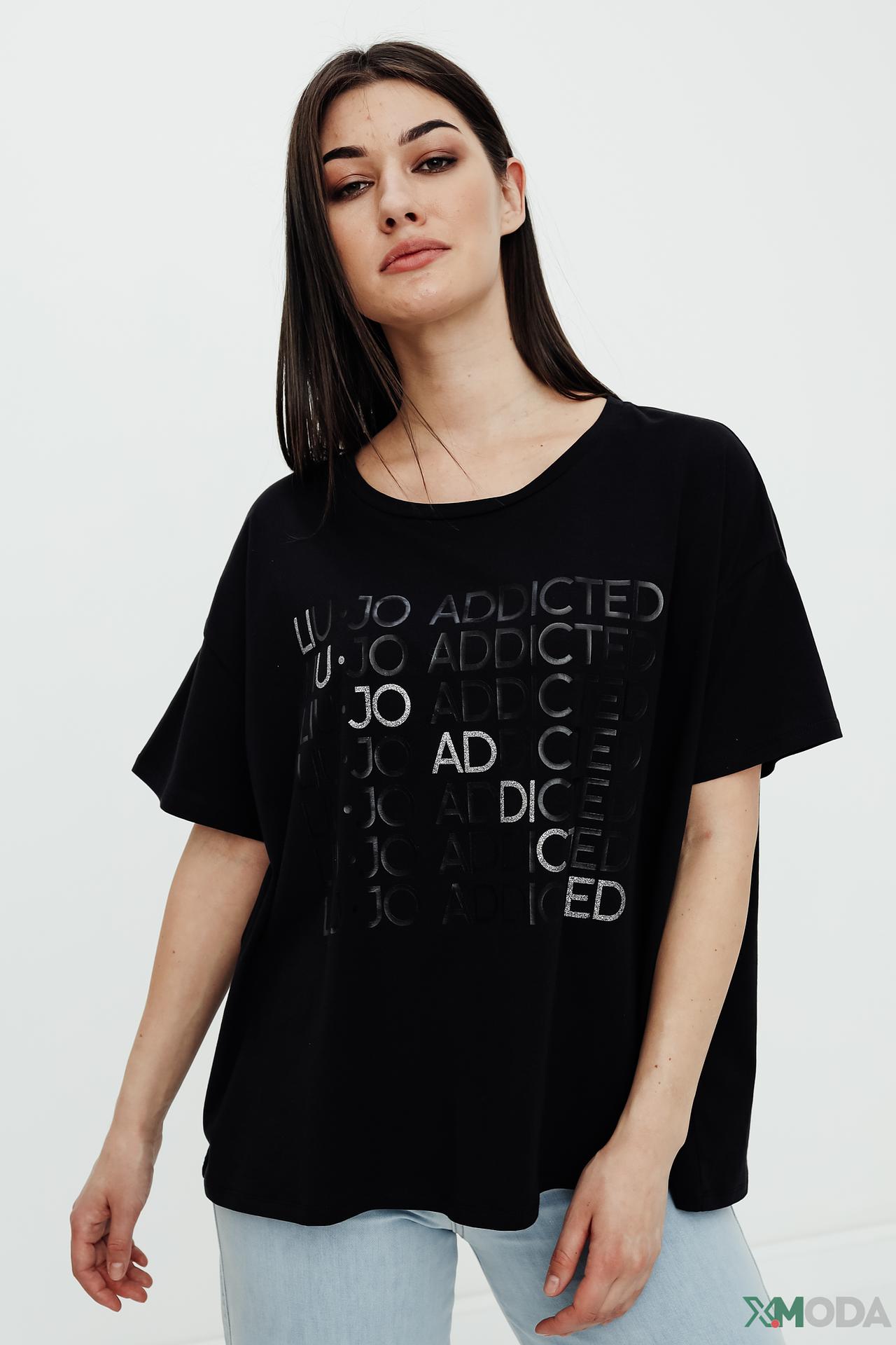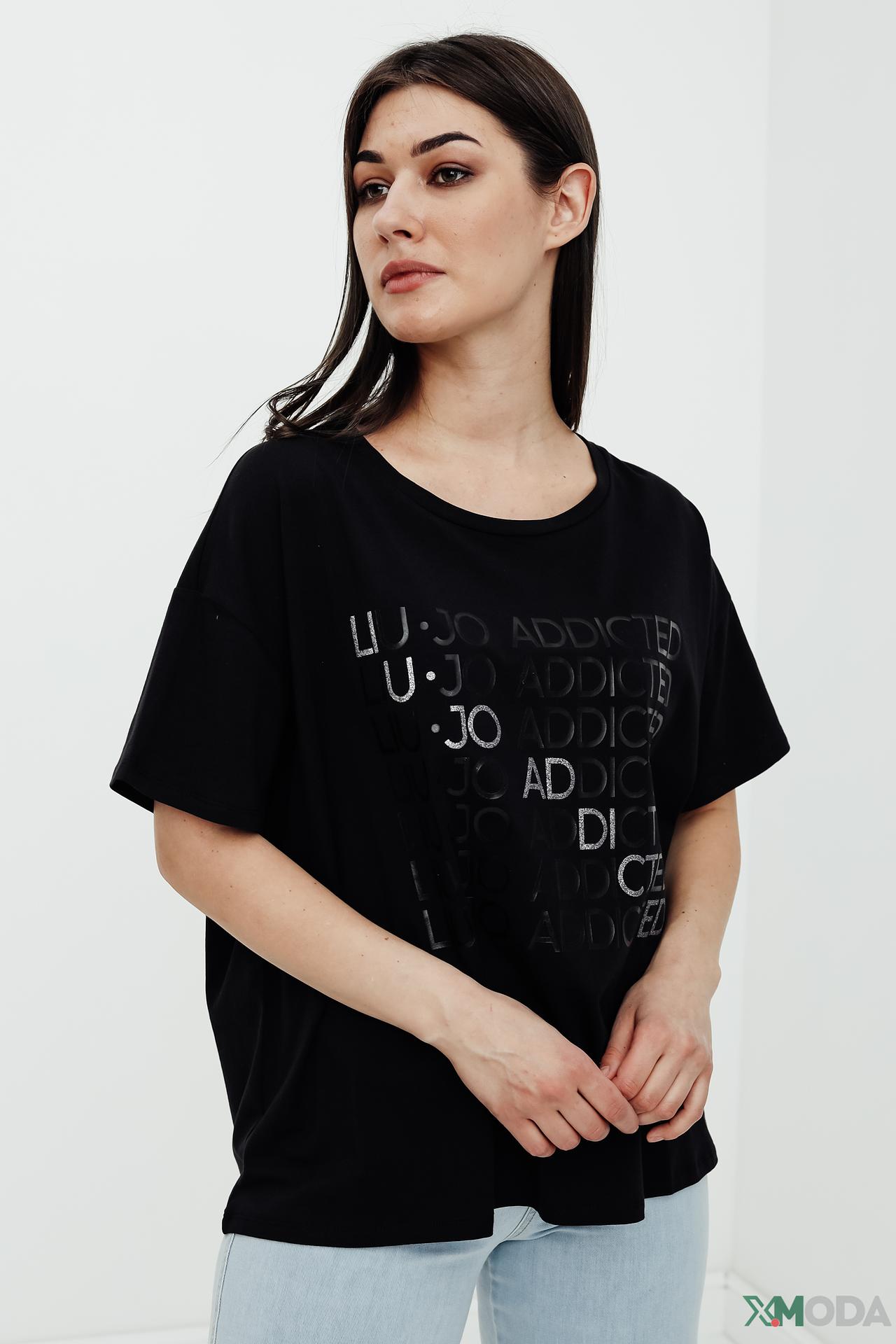 Чёрная футболка Liu-Jo с принтом и декоративными элементами