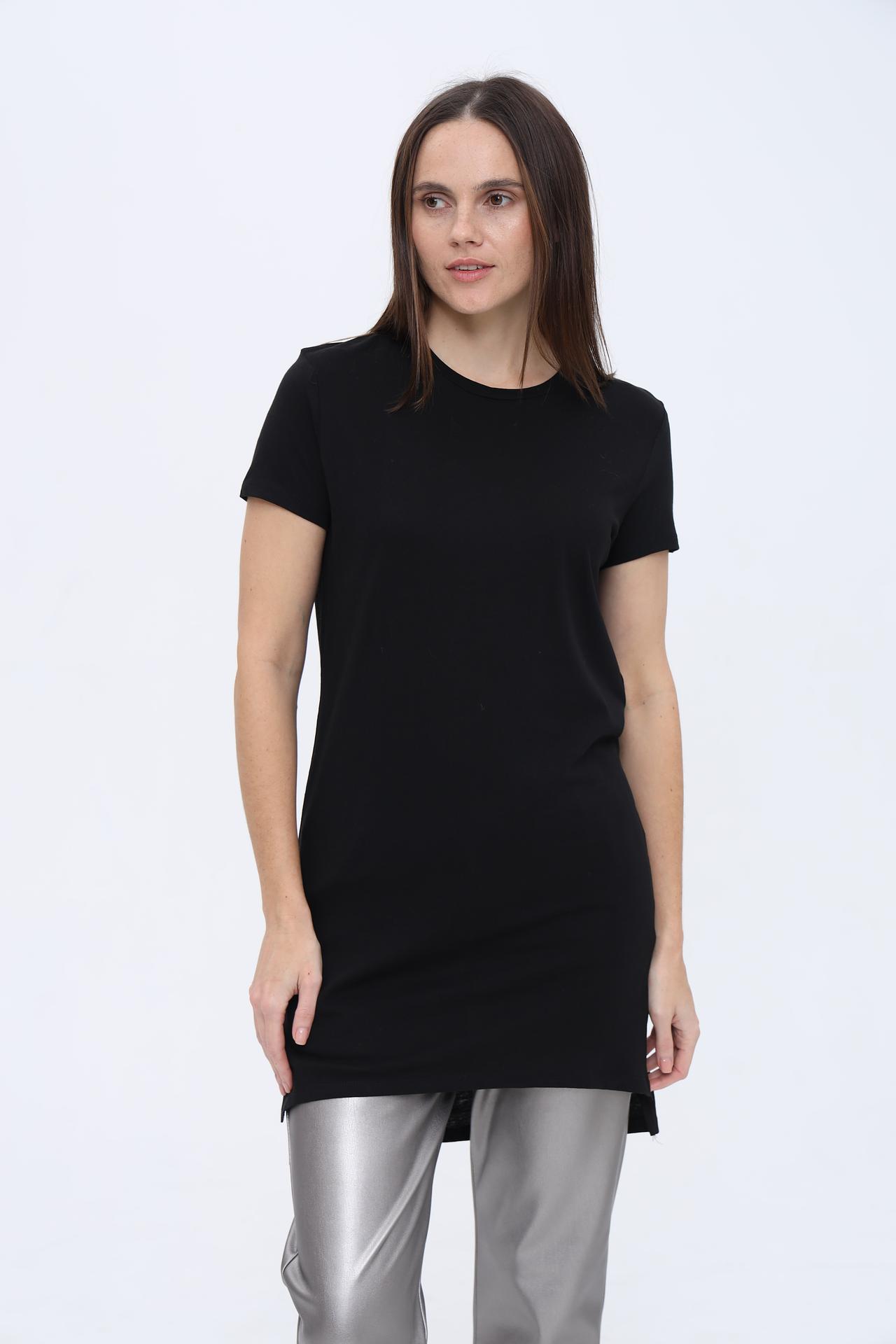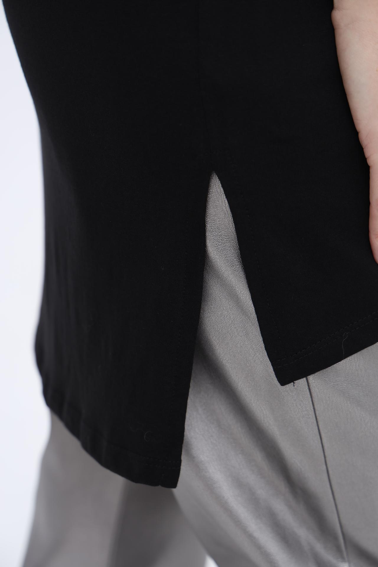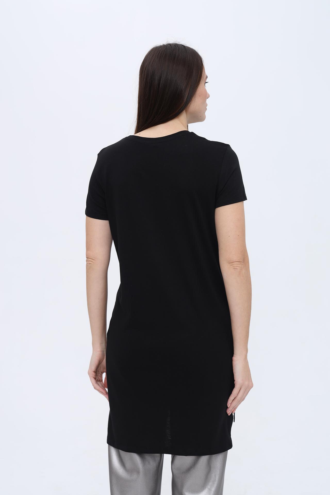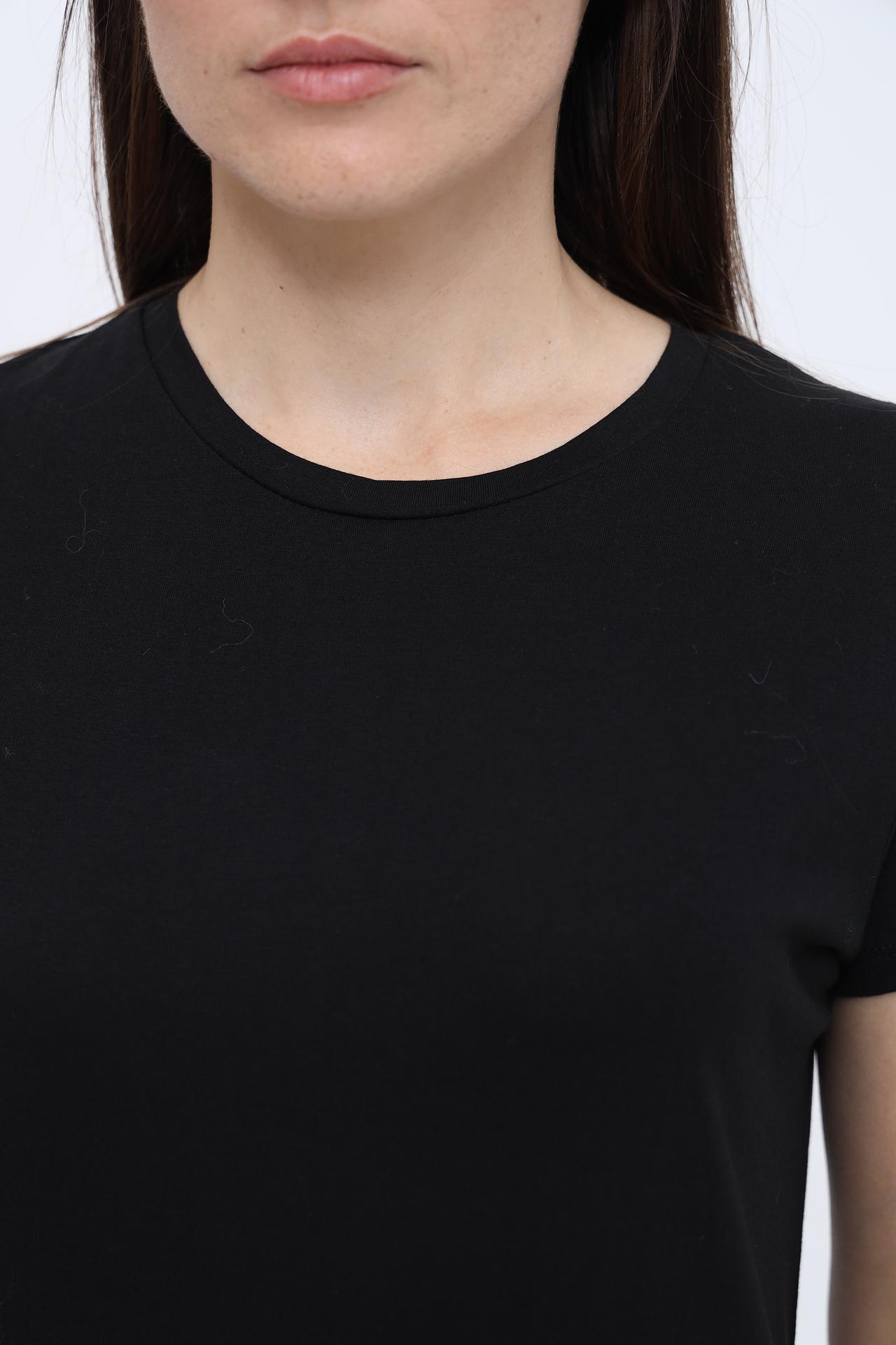 - Дизайн: Базовый черный цвет и минималистичный дизайн делают эту футболку идеальной основой для составления модных ансамблей.