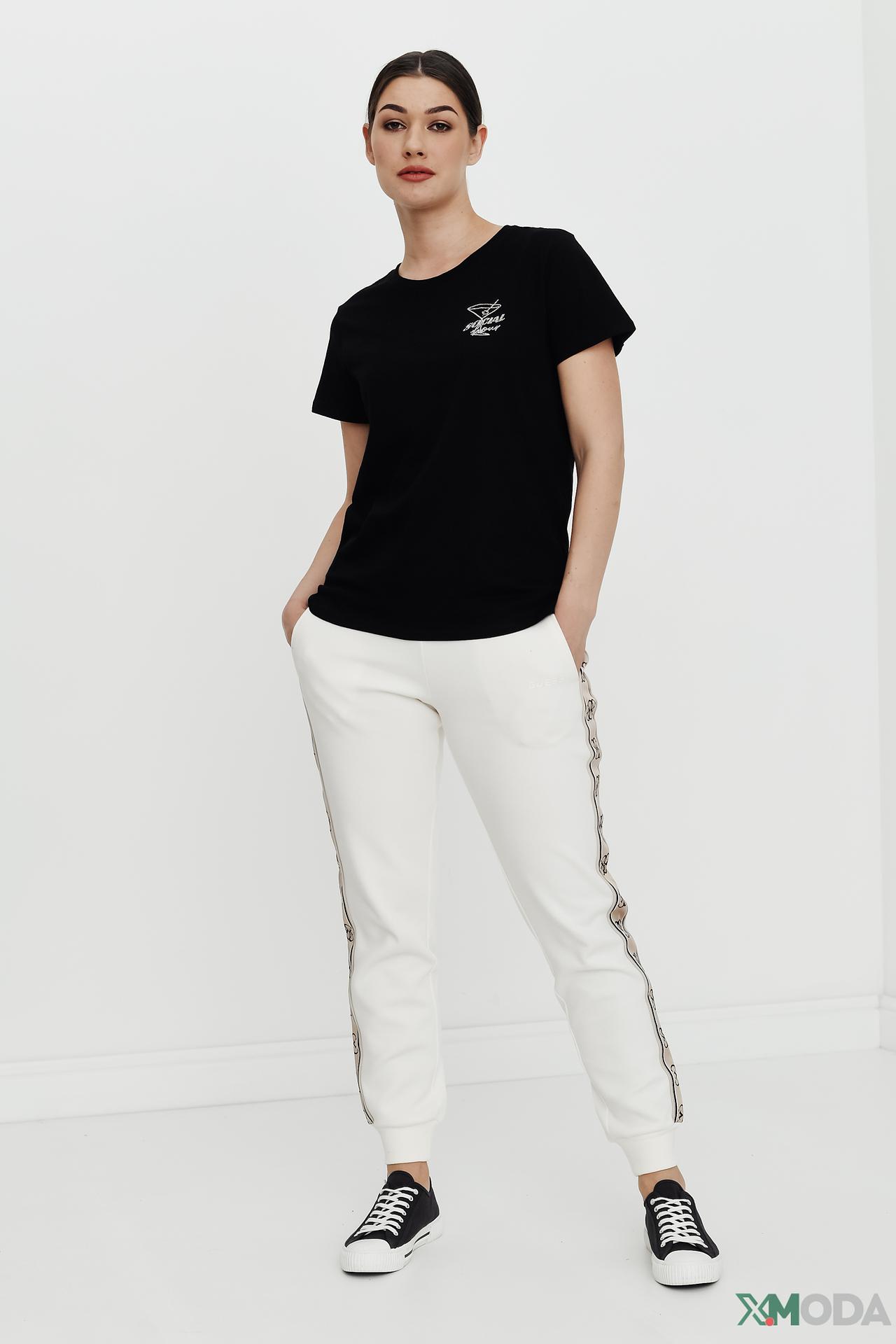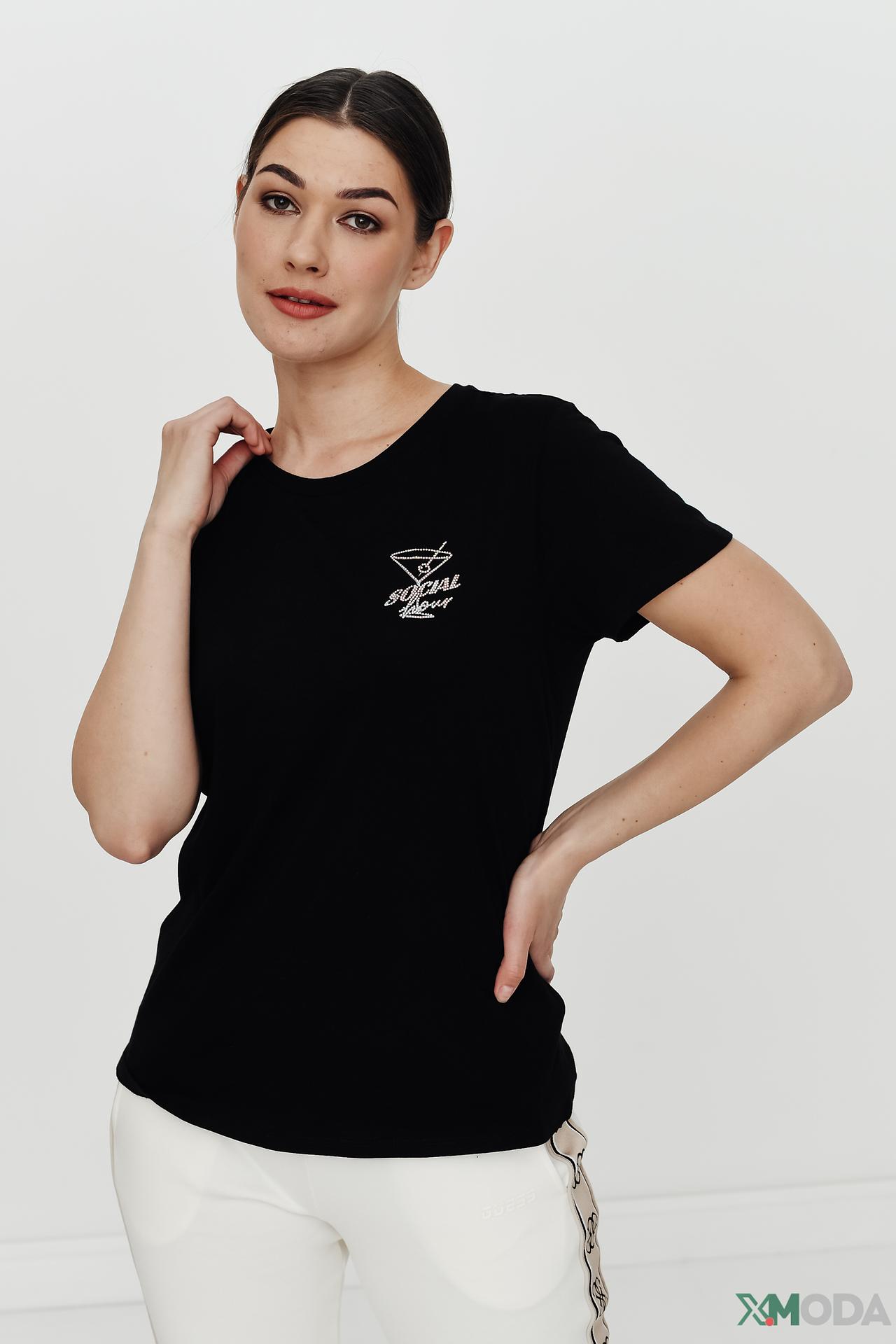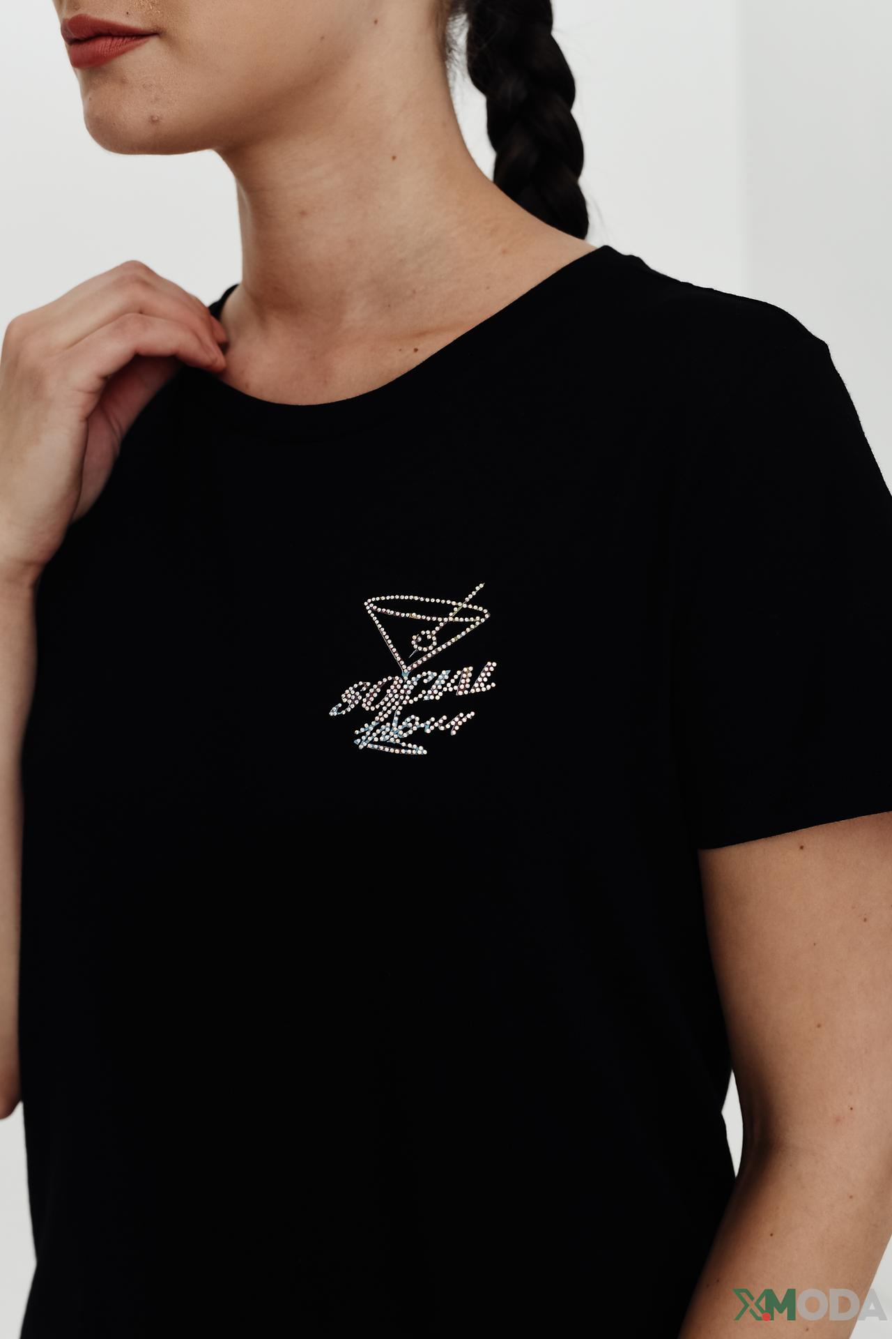 - Уникальный дизайн: принт и стразы делают футболку запоминающейся.