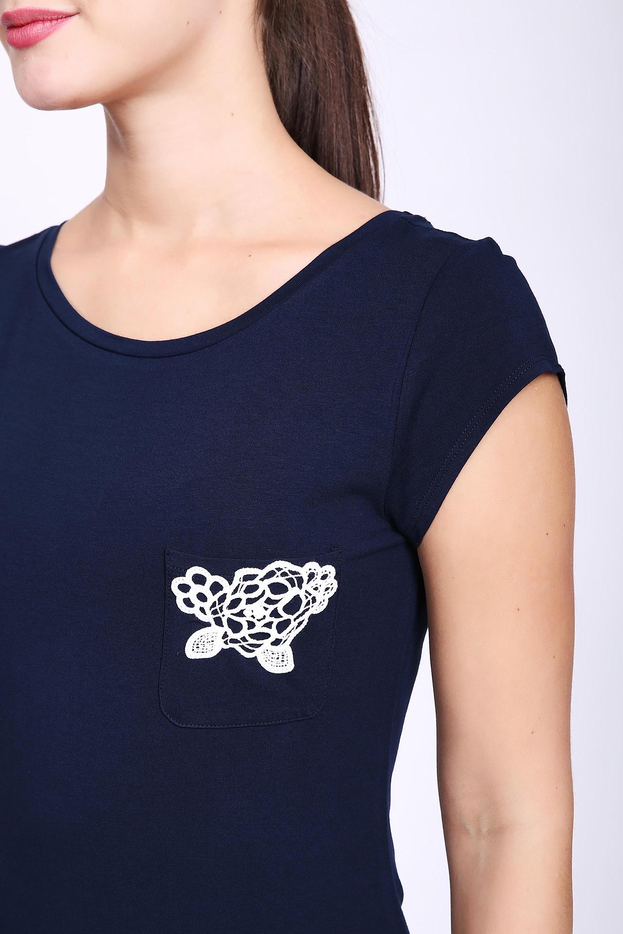 Футболка Pezzo тёмно-синяя с карманом и кружевом