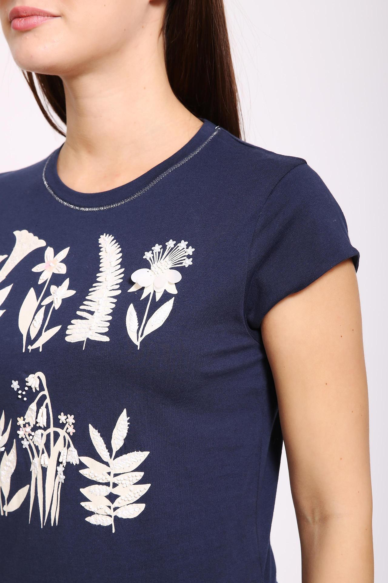 Футболка Pezzo с цветочным принтом, темно-синяя
