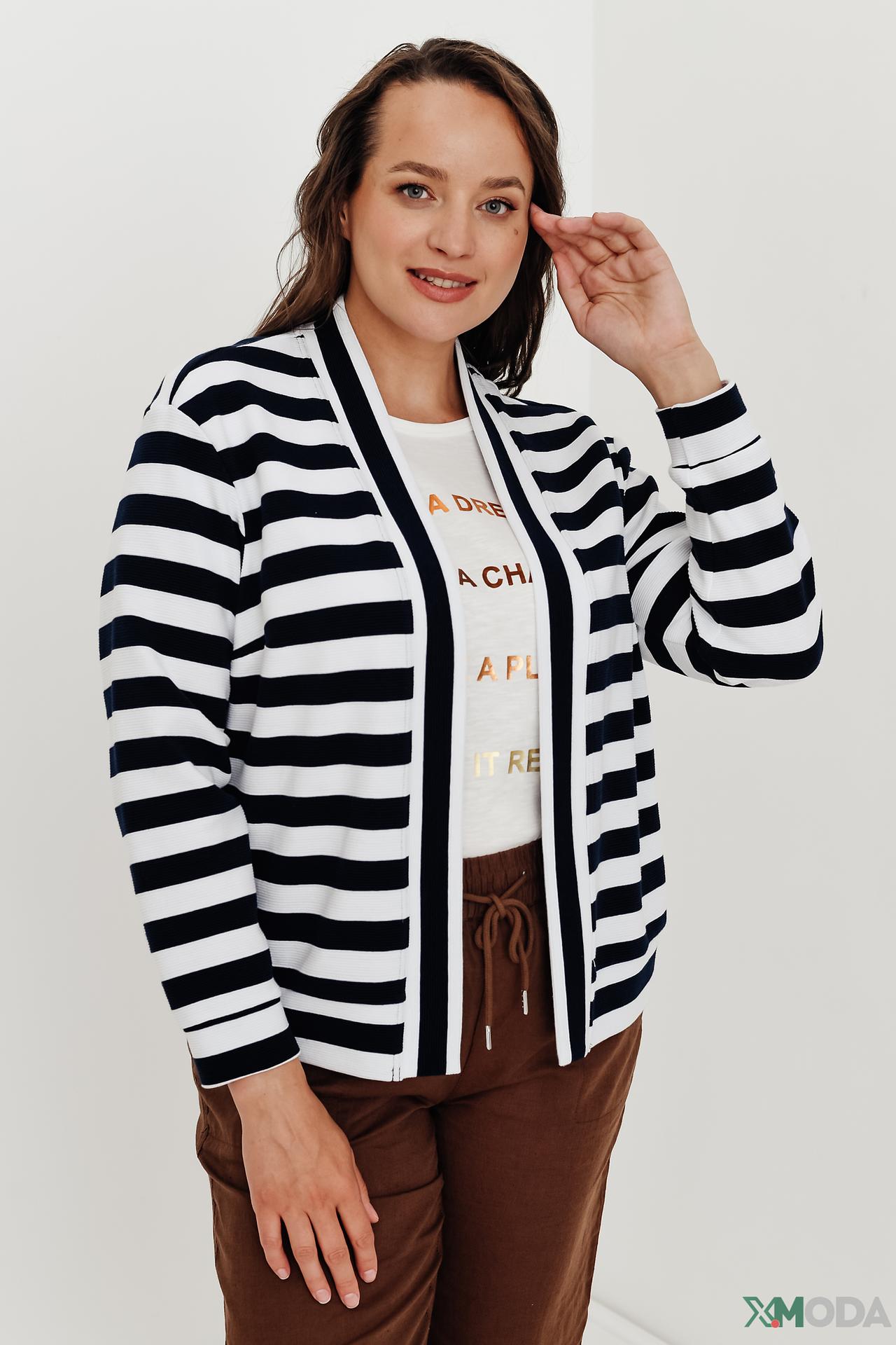 - Дизайн: Элегантный крой и актуальный принт в полоску делают этот кардиган универсальным элементом гардероба. Он легко добавит нотку стиля любому наряду.