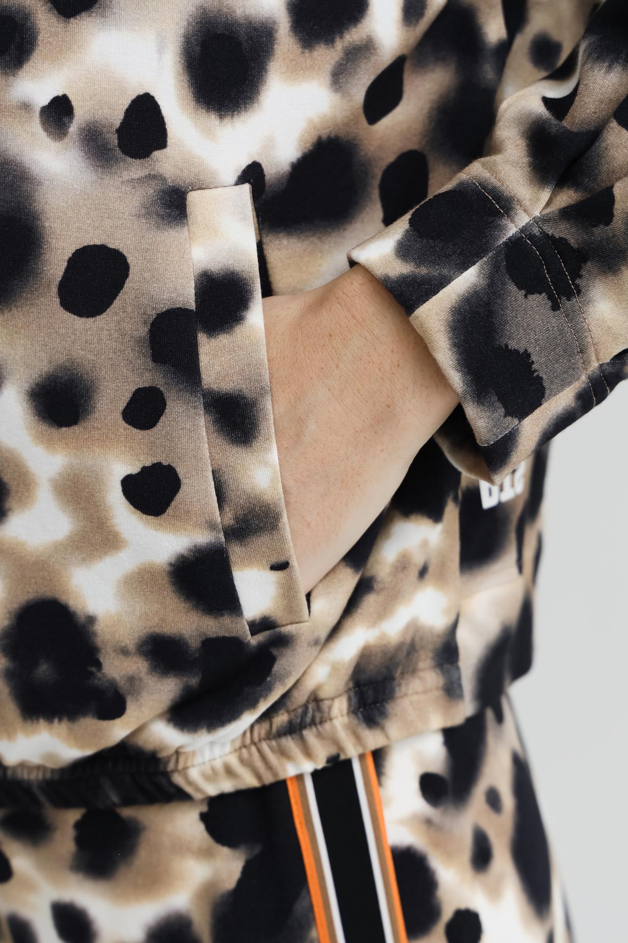 Эффектный кардиган от Marc Cain, выполненный в стильном леопардовом принте, станет ярким акцентом вашего образа. Модель с удобной молнией и двумя боковыми карманами идеально подходит для создания расслабленных, но в то же время трендовых комплектов. Кардиган прекрасно сочетается как с повседневными брюками, так и с джинсами, добавляя пикантности любому наряду.