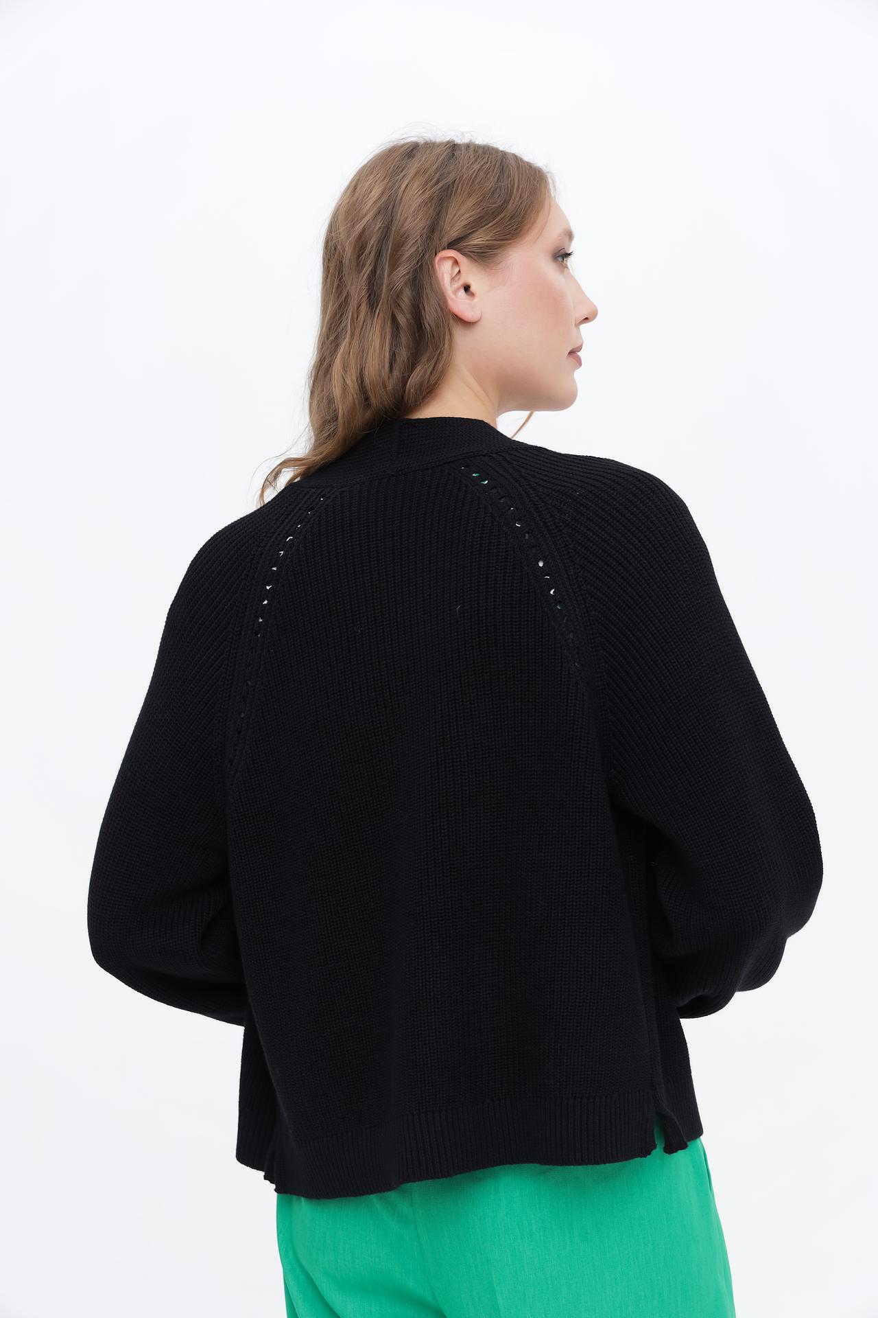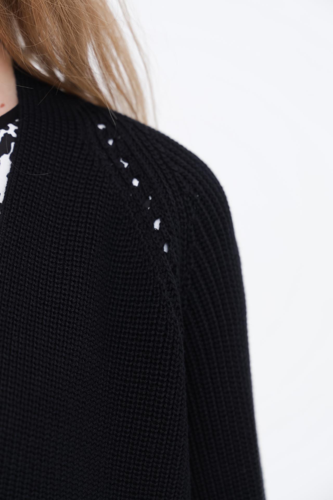 - Детали: Оригинальные декоративные элементы в виде перфорации на плечах придают кардигану изысканность.