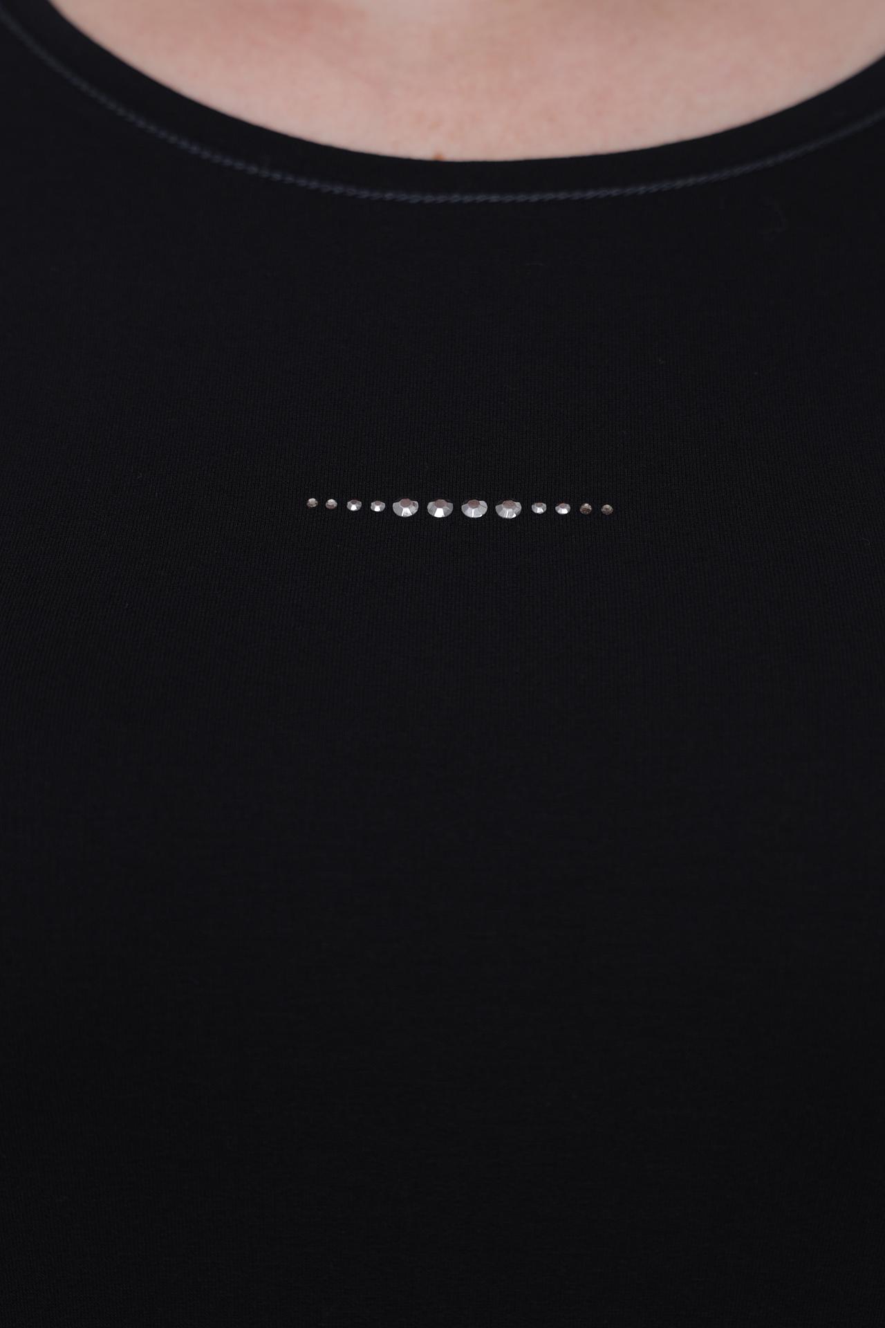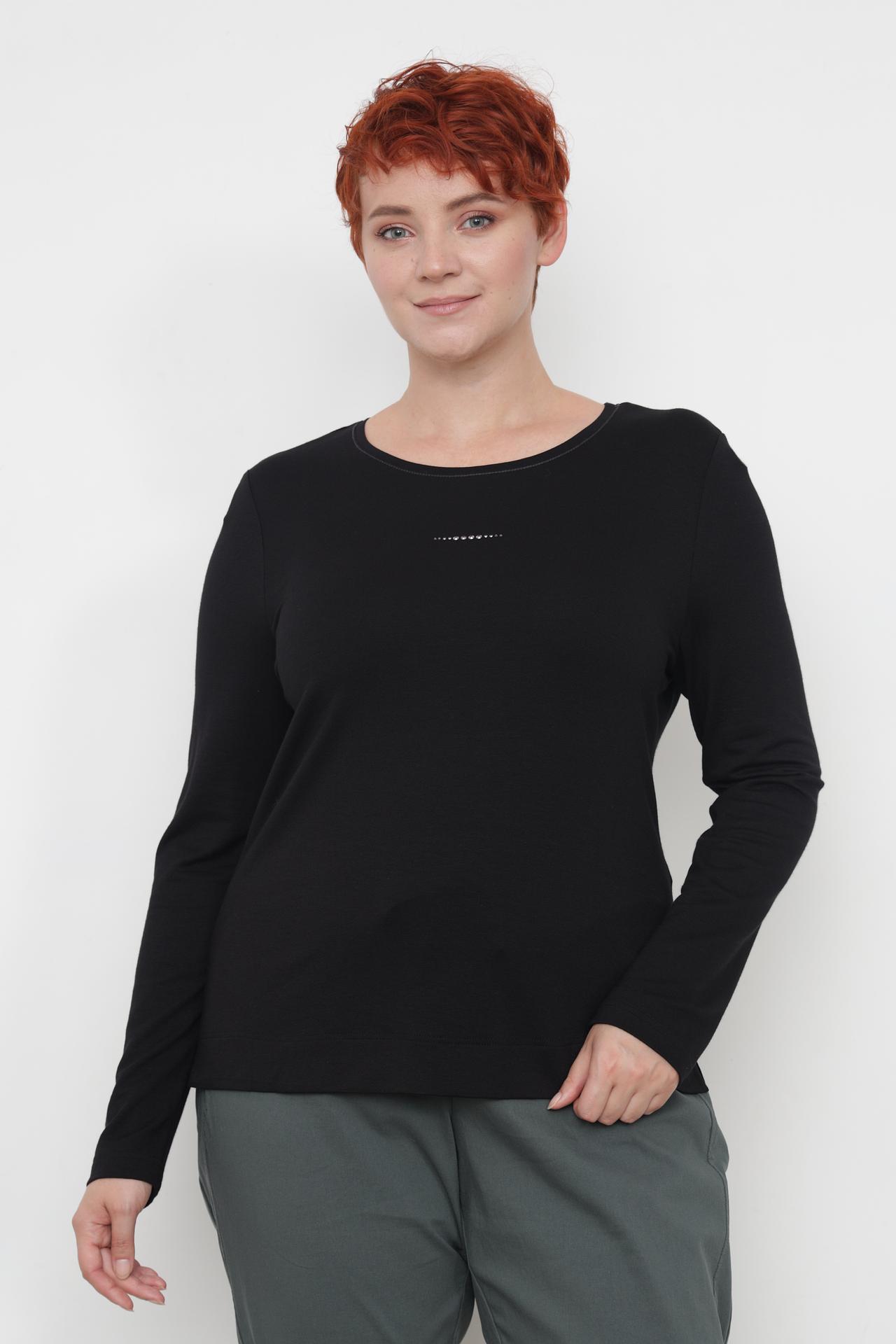 Элегантный лонгслив от бренда Erfo — идеальный выбор для создания стильных и комфортных образов. Универсальный чёрный цвет и лаконичный дизайн делают его незаменимым элементом гардероба. Деликатный декор в виде ряда страз на груди добавляет изысканности и притягивает взгляды.
