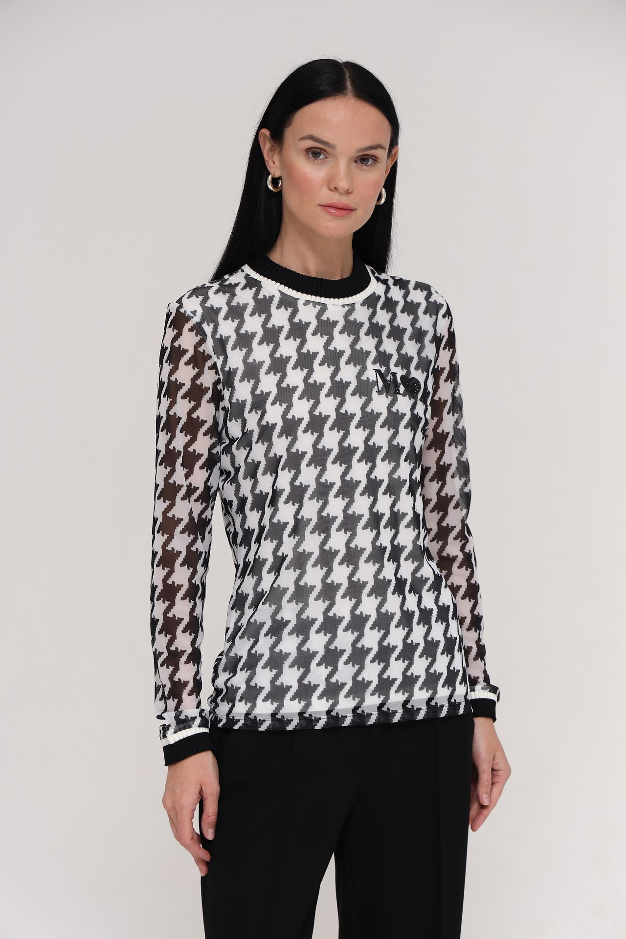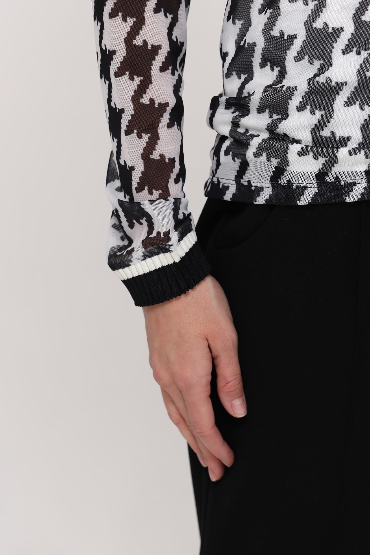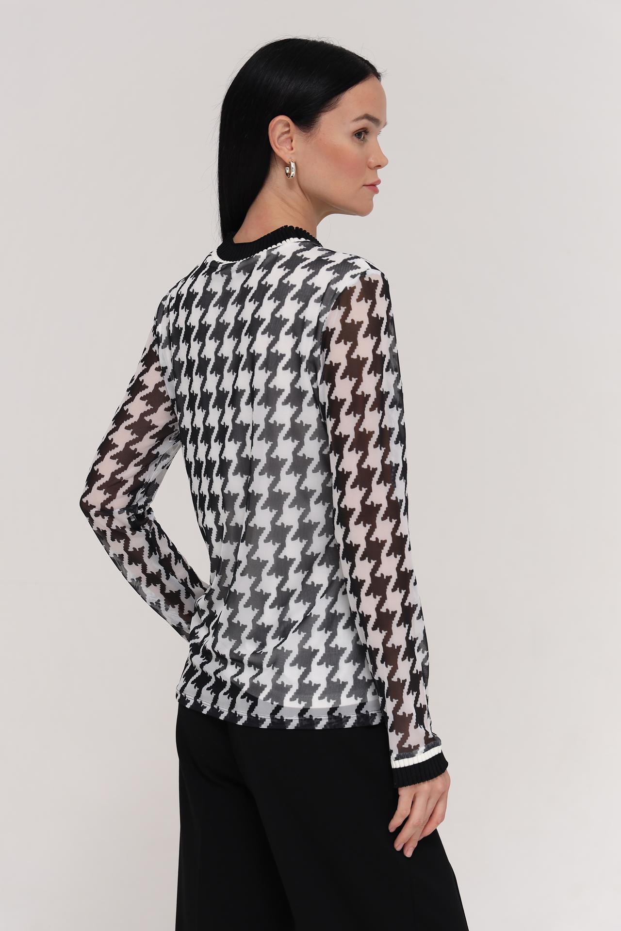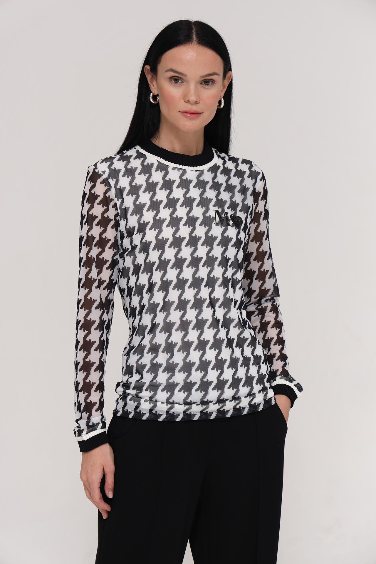 - Узор "гусиная лапка": Классический чёрно-белый принт придает лонгсливу неповторимый шарм и актуальность. Этот узнаваемый паттерн легко интегрируется в различные стили, подчеркивая ваш безупречный вкус.