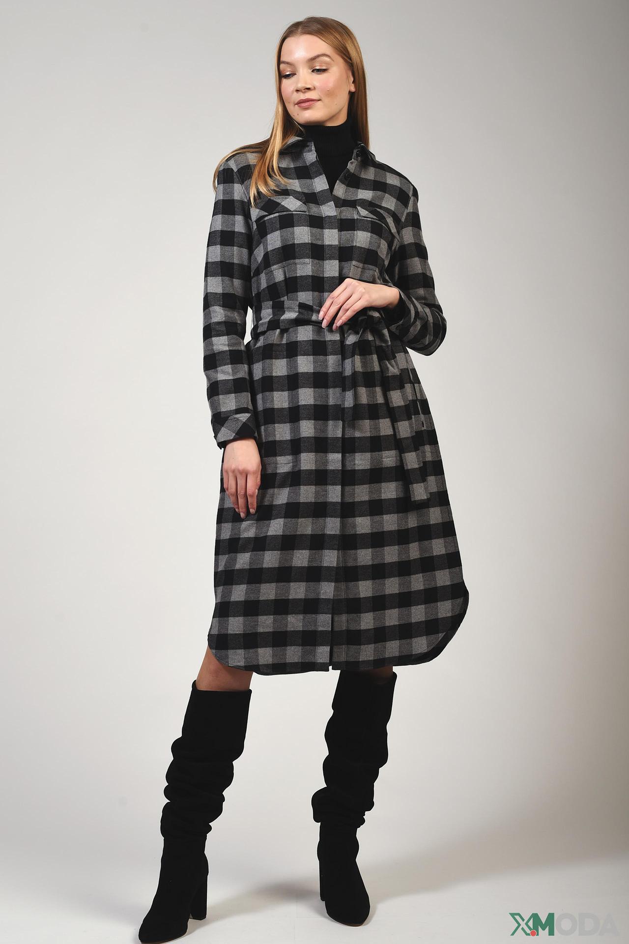 Платье рубашка Windsor в серо-черную клетку с поясом