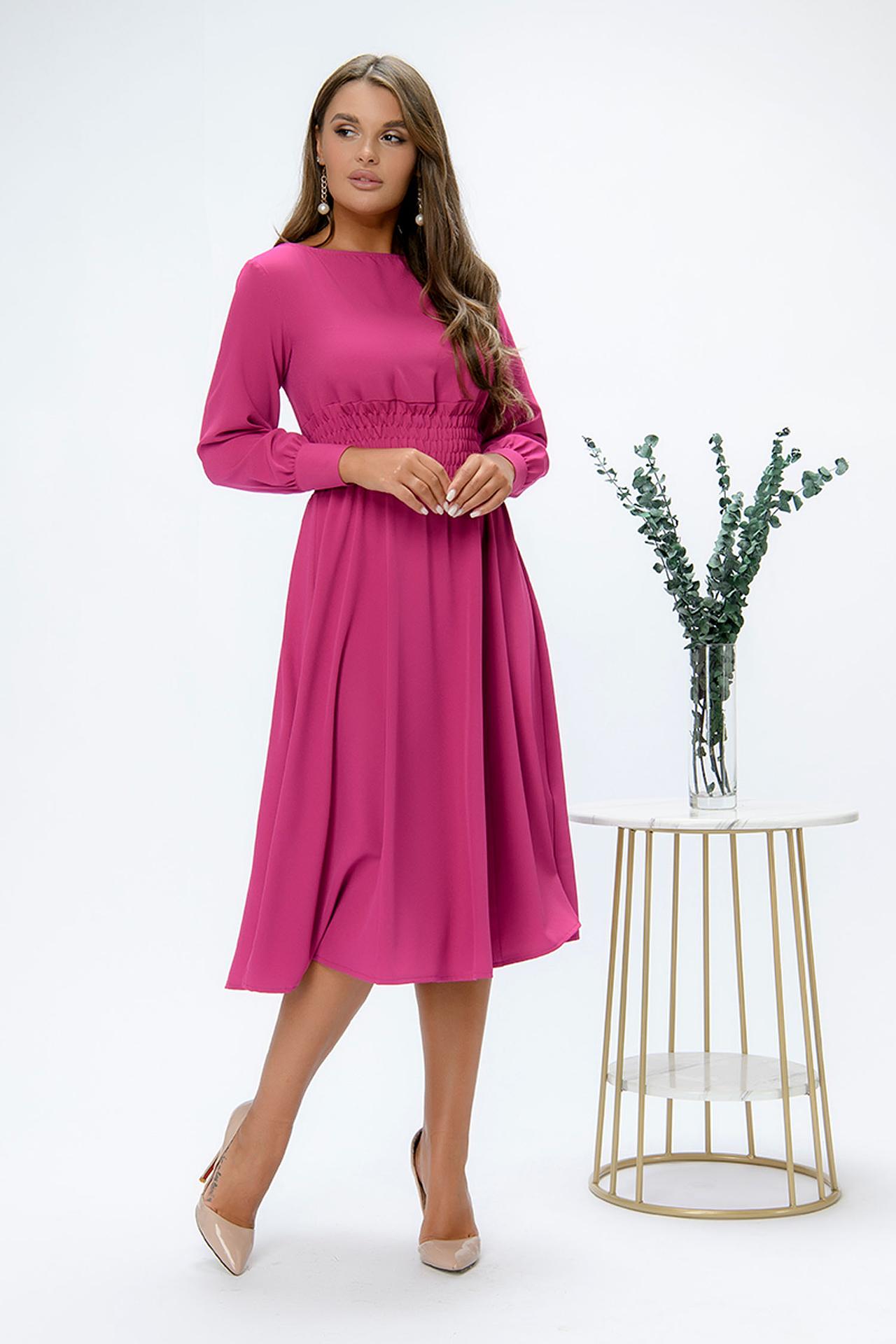 Элегантное платье миди от бренда 1001 DRESS - идеальный выбор для создания женственного и модного образа. Модель выполнена в насыщенном оттенке фуксии, который подчеркнет вашу индивидуальность. Длинные рукава с манжетами и округлый вырез горловины создают классический силуэт. Приталенный силуэт с акцентом на талии благодаря эластичной вставке выгодно подчеркивает фигуру. Юбка А-силуэта расклешенная книзу, длиной до середины икры, добавляет образу легкости и утонченности.