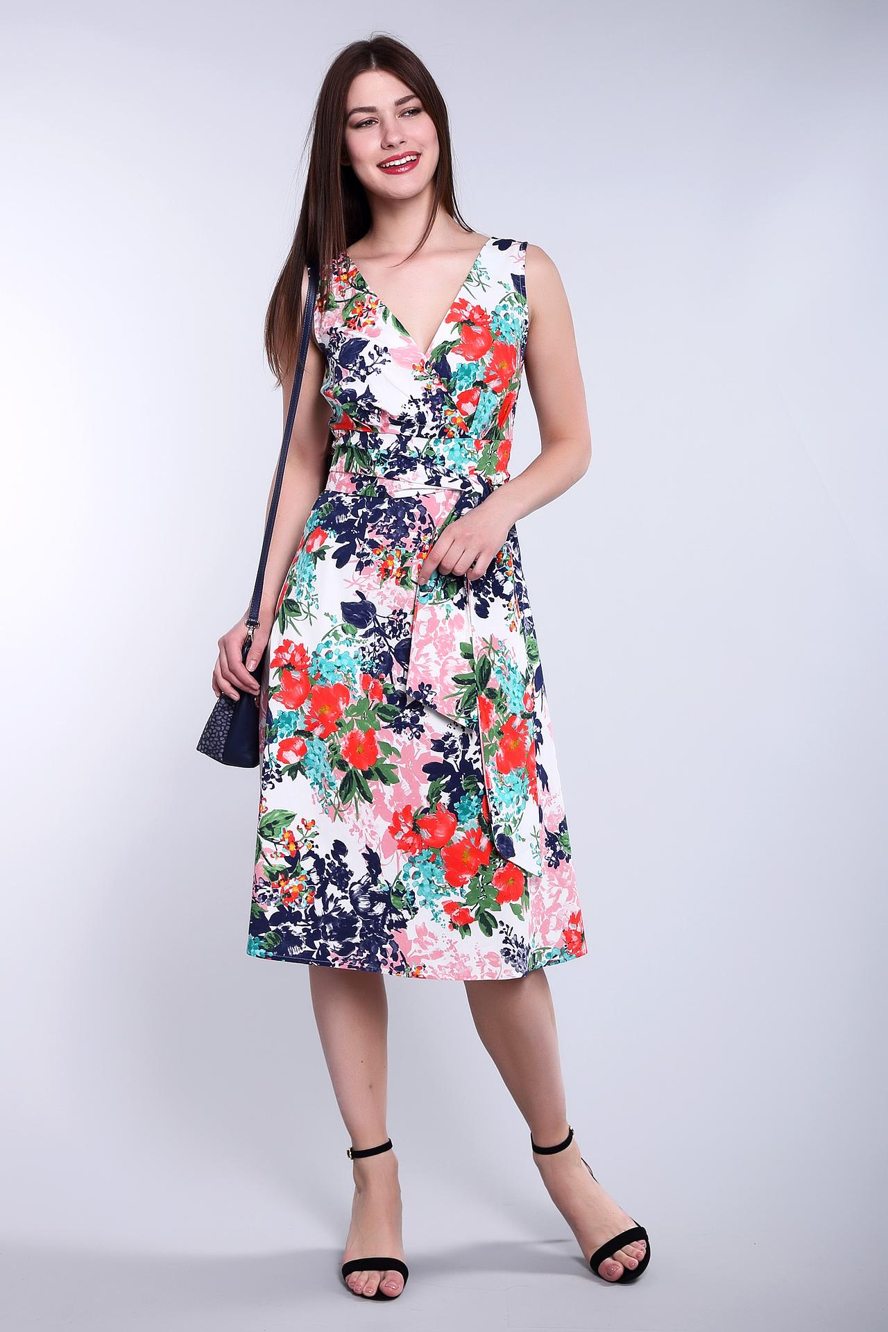 - Дизайн: Женственное платье А-силуэта с V-образным вырезом и поясом на талии. Оригинальный цветочный принт делает модель яркой и запоминающейся.
