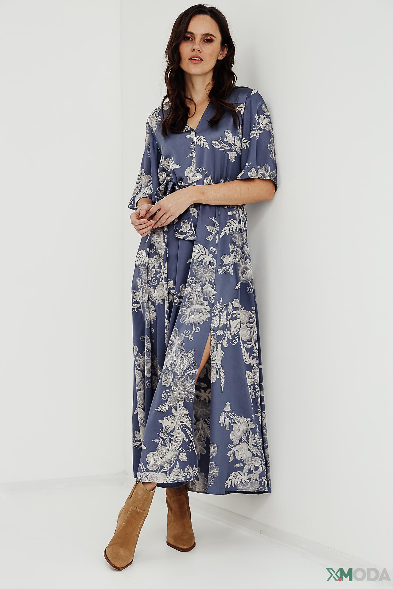 - Комфортная посадка: Свободный крой и пояс на талии обеспечивают идеальную посадку, подчеркивая фигуру и даря комфорт. Длина миди и высокий боковой разрез дарят свободу движений.