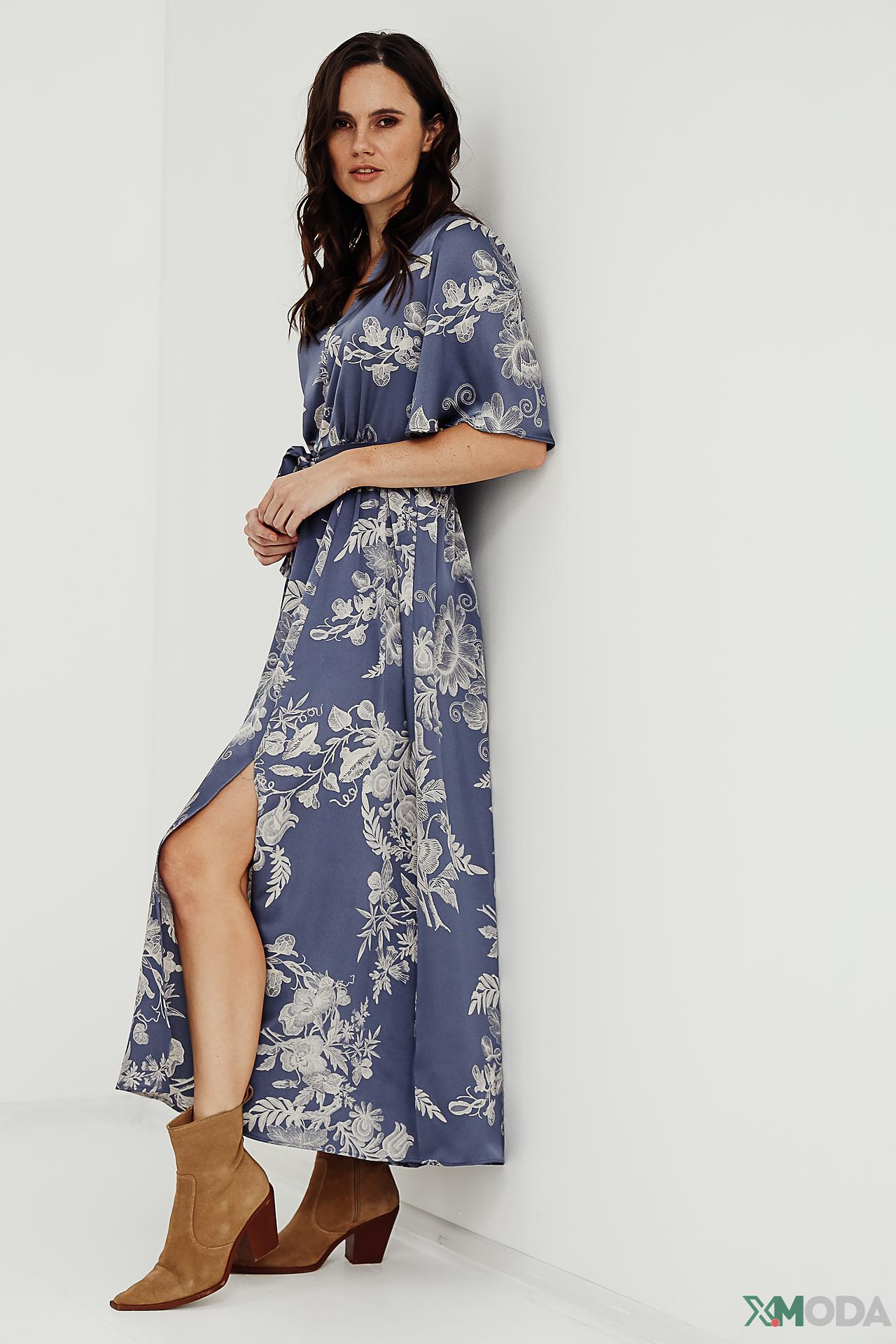 Платье Penny Black синее миди с цветочным принтом и разрезом