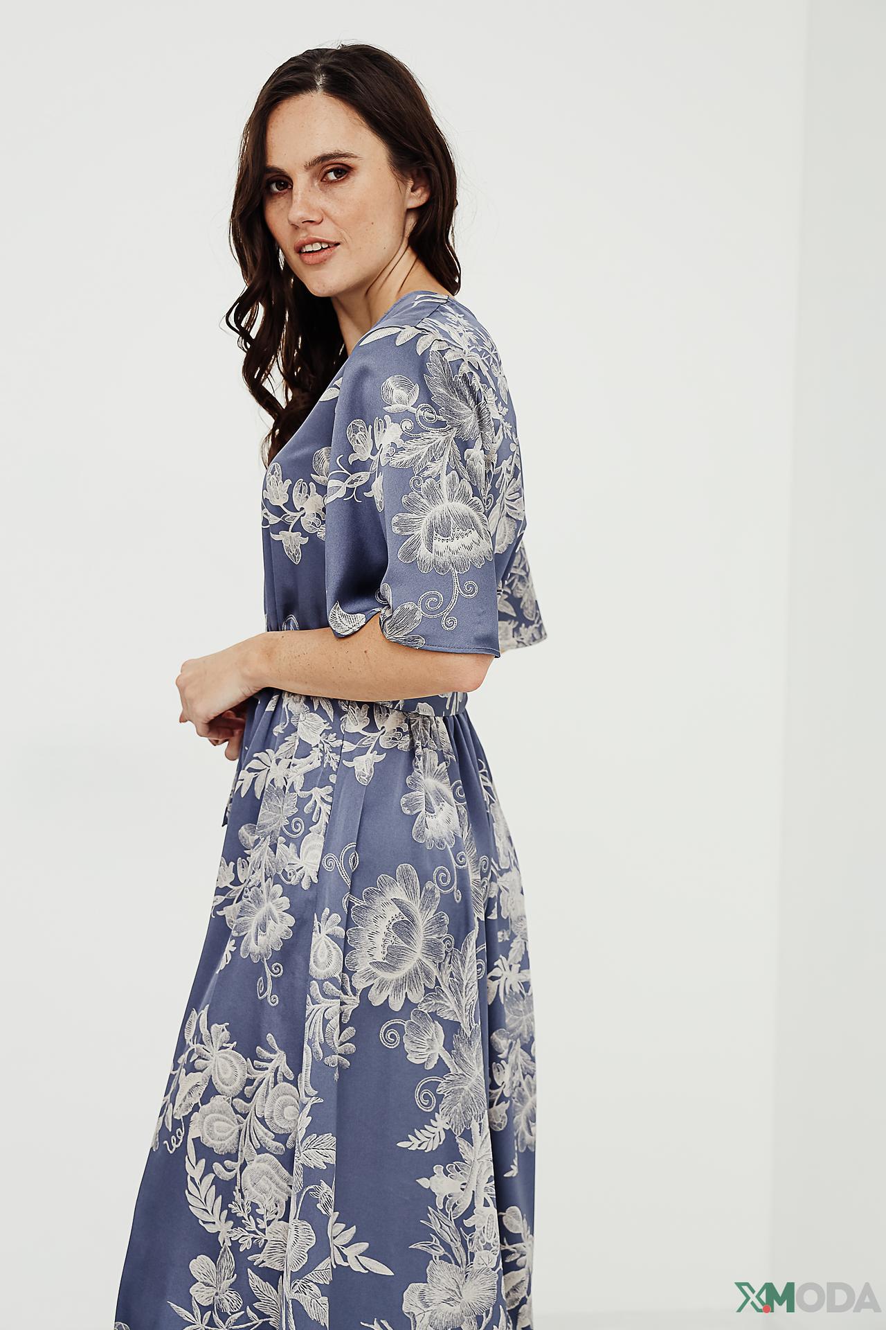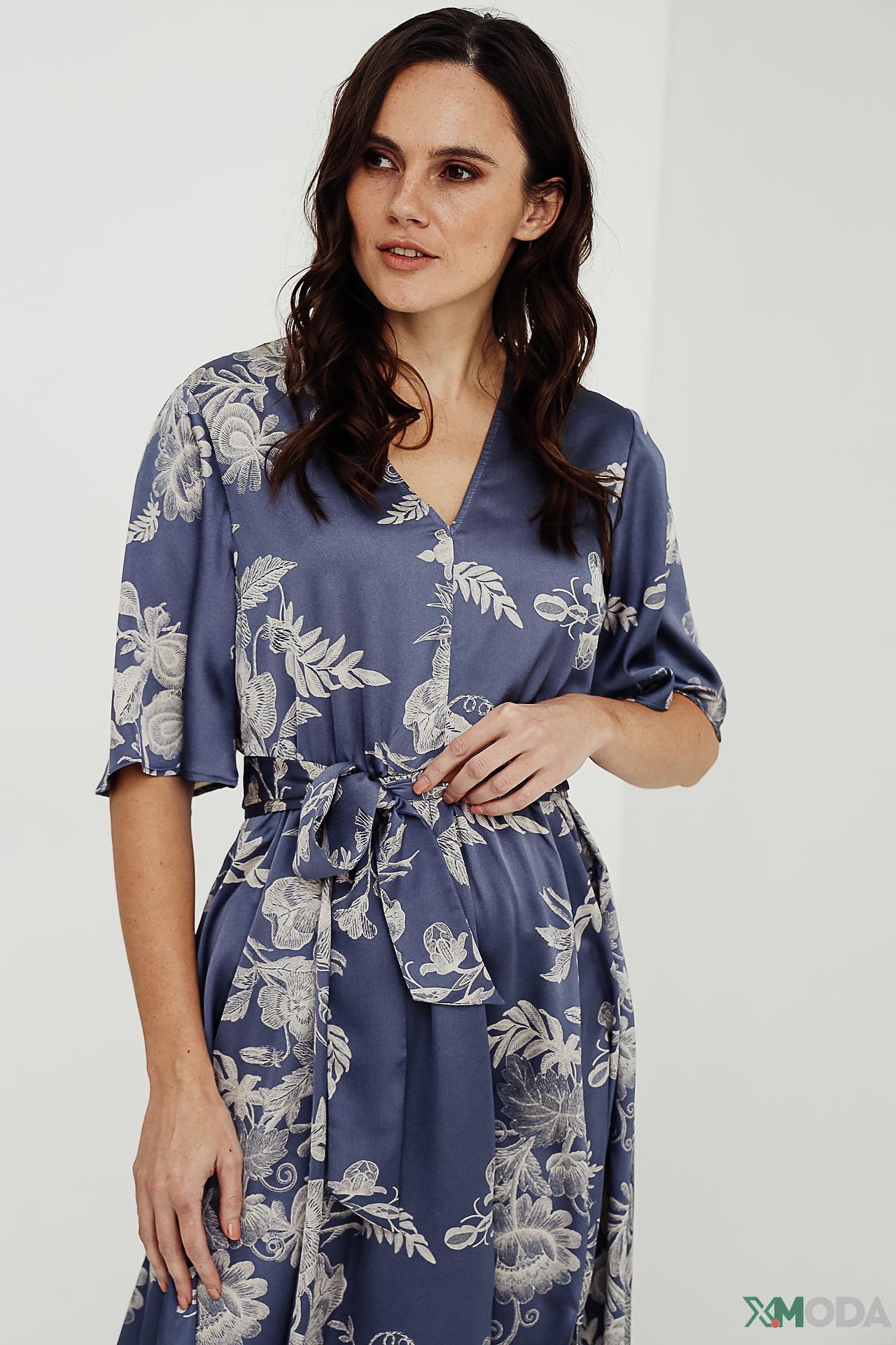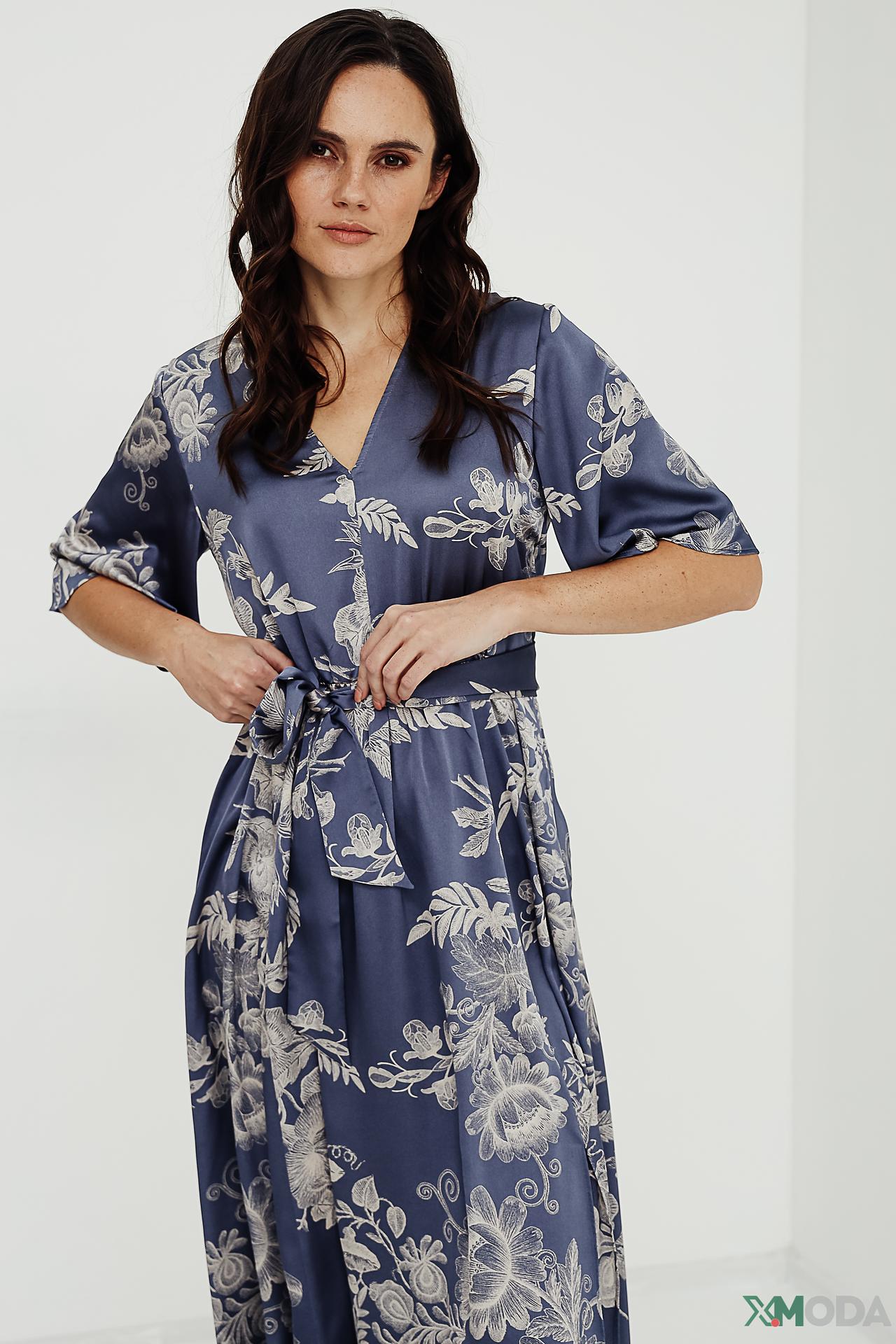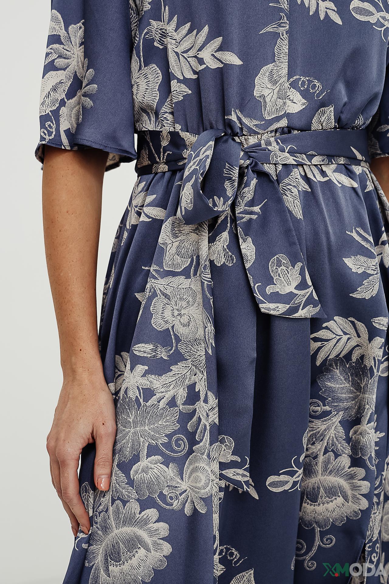 - Стильный дизайн: Платье миди с ярким цветочным принтом на глубоком синем фоне создает неповторимый образ. Цветочные мотивы подчеркивают женственность и легкость силуэта.