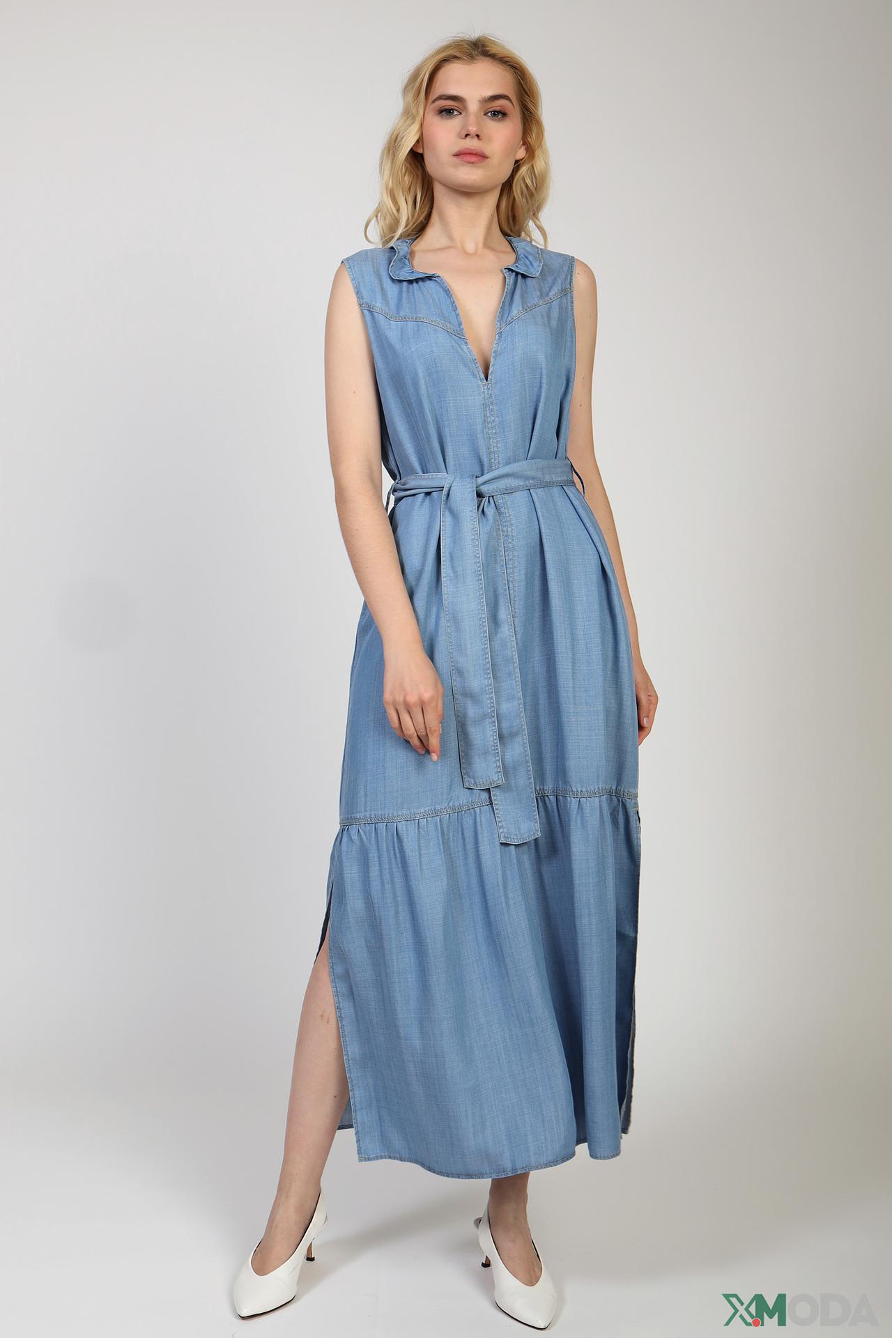 Платье Twin Set длинное рубашечного кроя голубого цвета