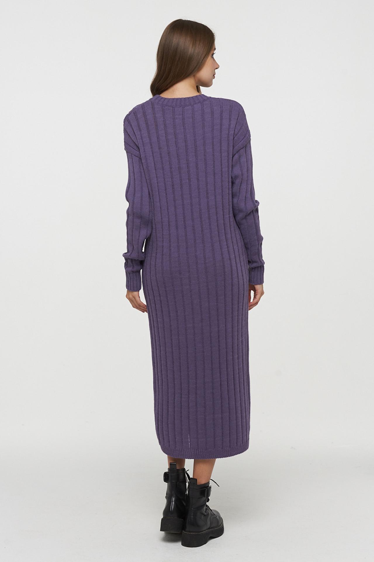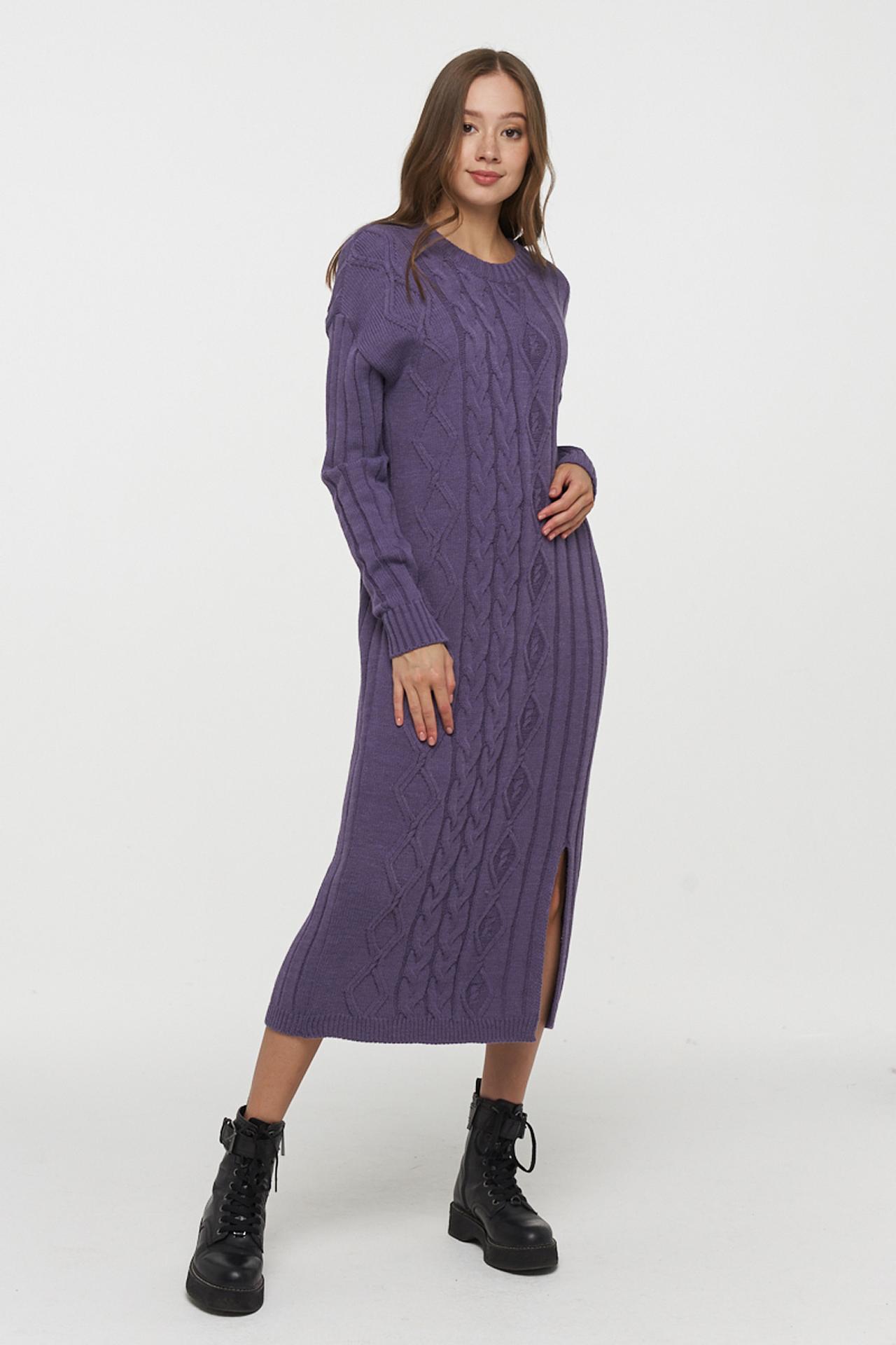 Платье VAY сиреневое вязаное с косами и разрезом