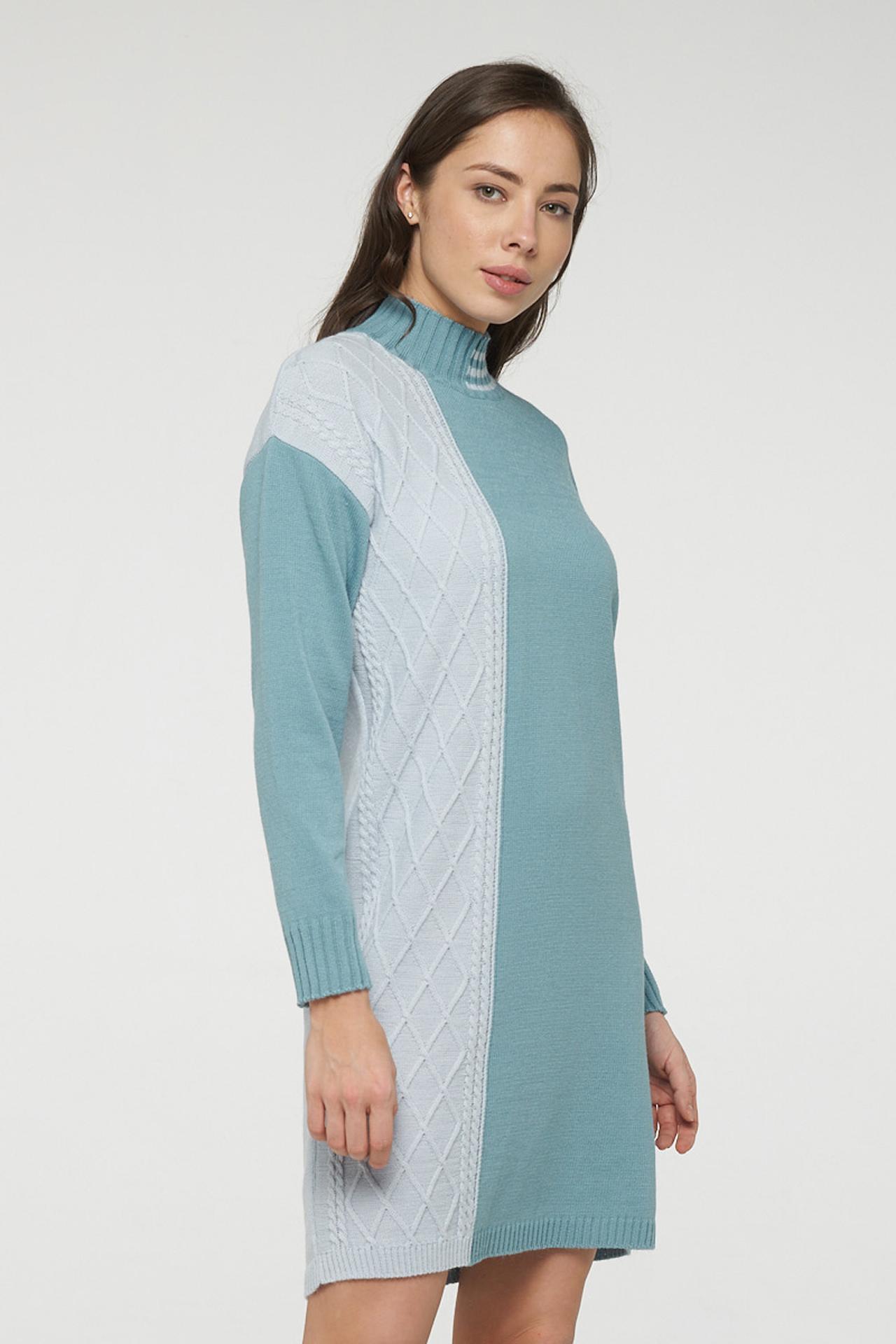 Платье выполнено из высококачественных материалов: 30% шерсть и 70% пан. Это сочетание обеспечивает долговечность изделия и сохраняет его первоначальный вид даже после многократных стирок. Вязка «косы» добавляет платью изысканности и делает его более интересным.